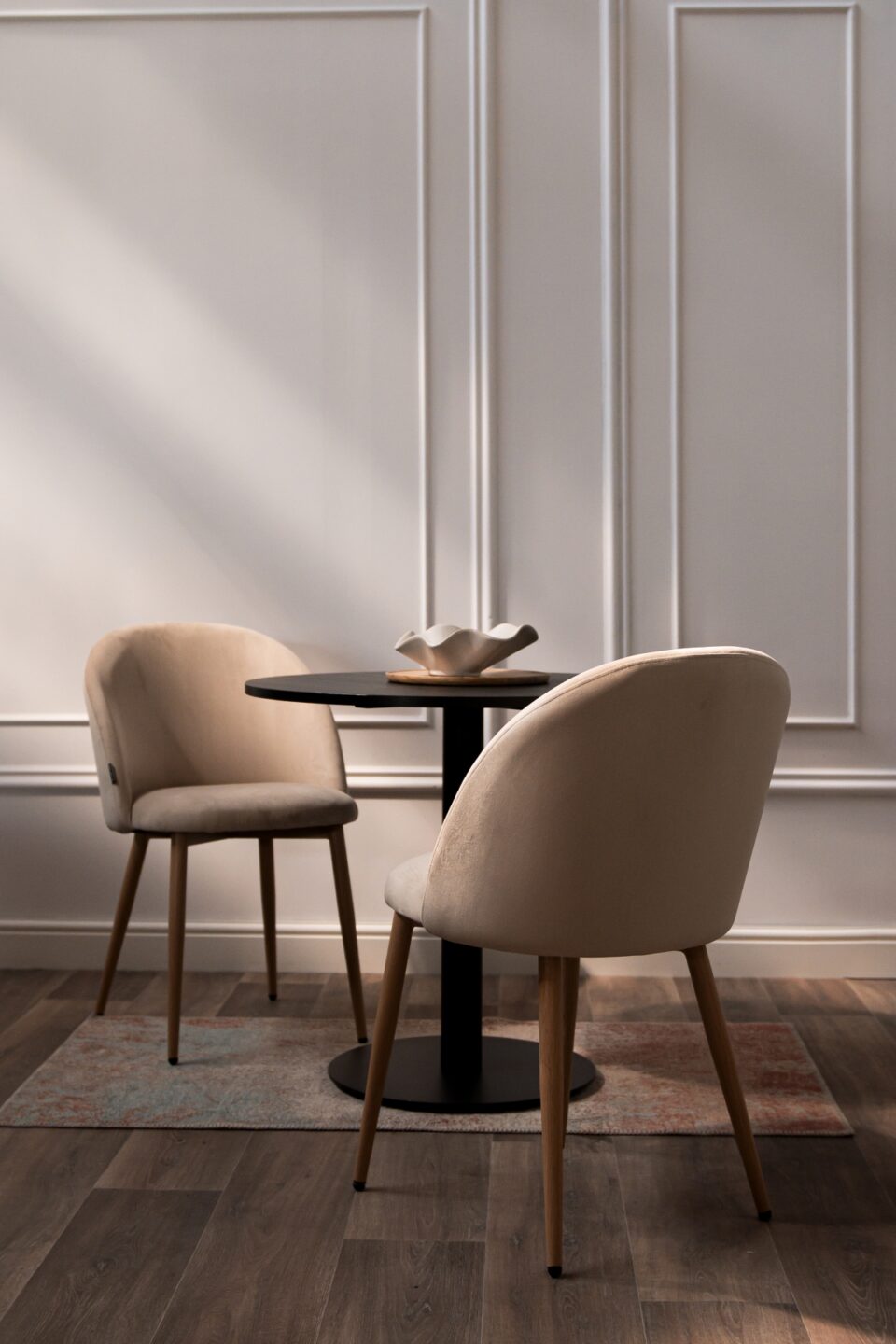 krzesło tapicerowane tkaniną welurową łatwą w czyszczeniu