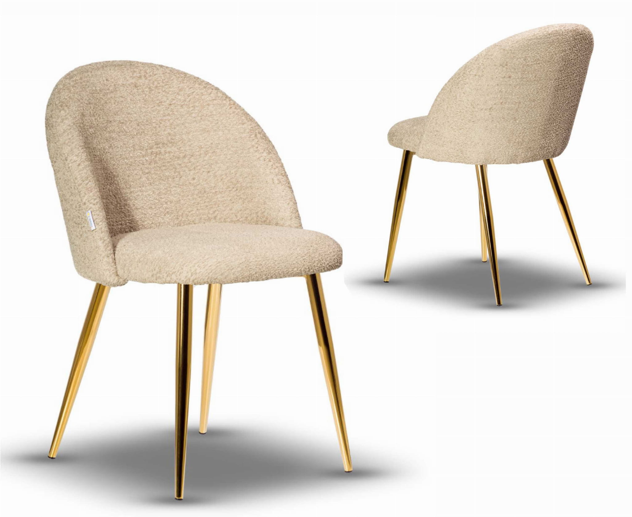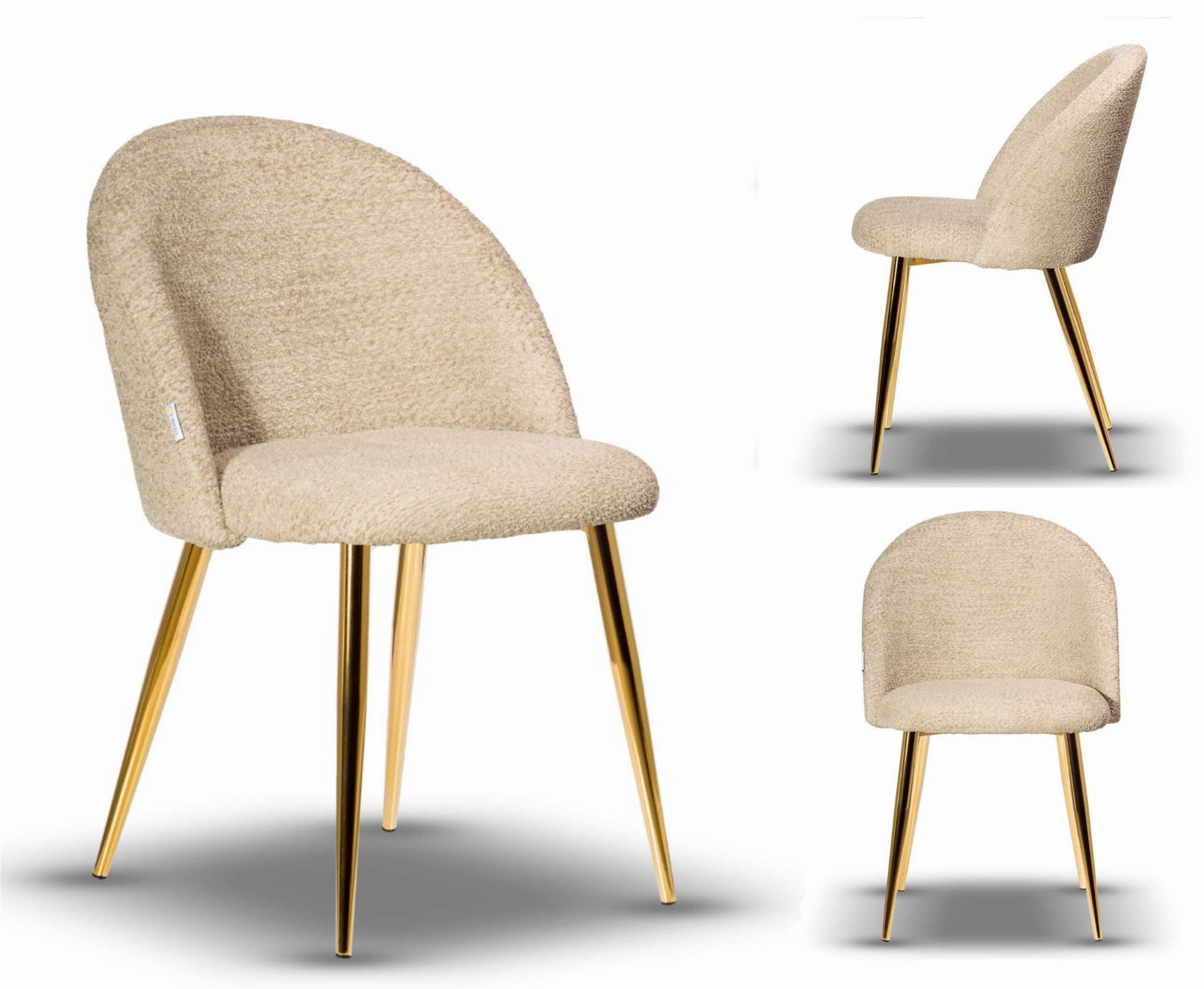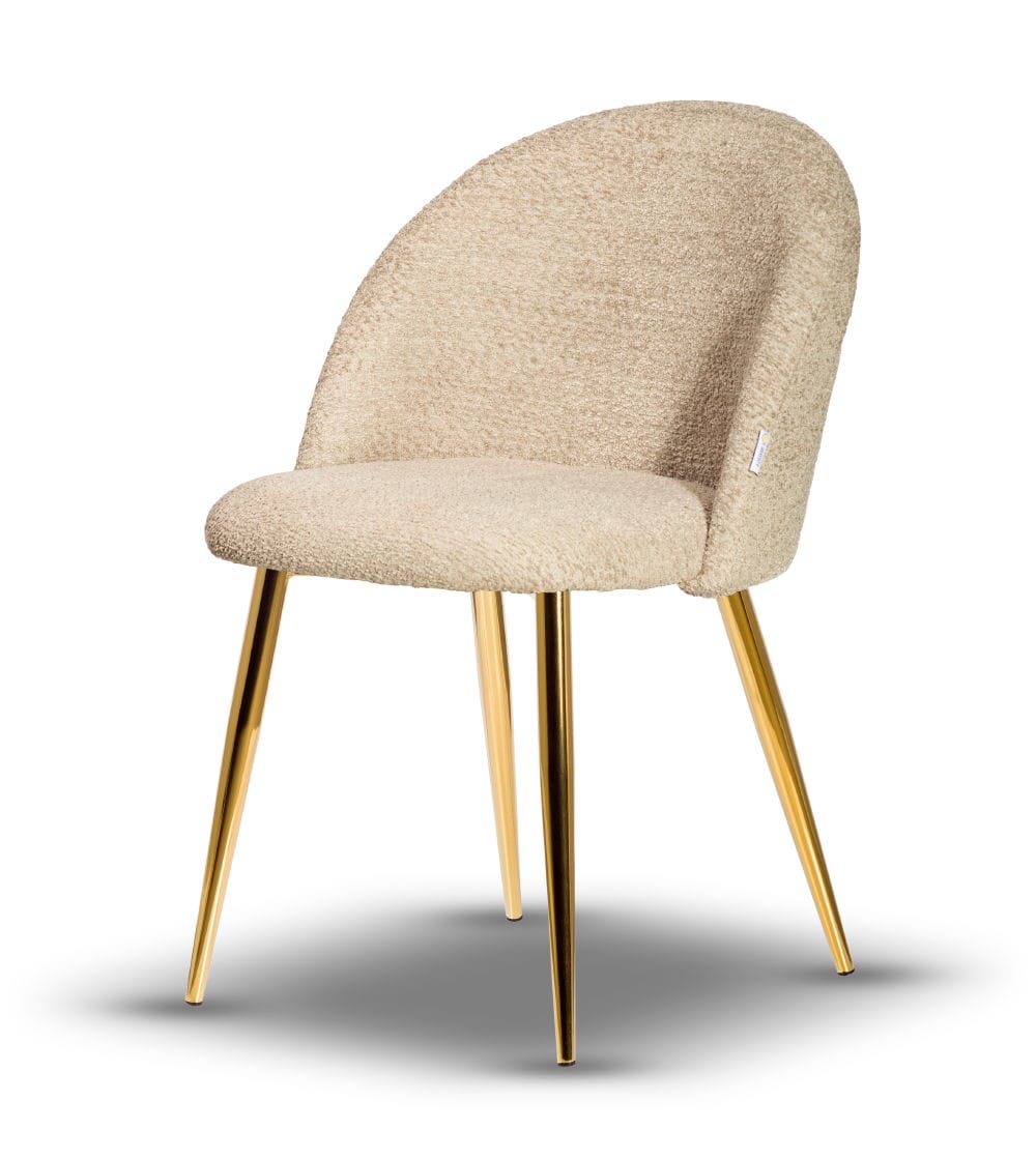 Krzesło Boucle SOUL noga złota z tkaniną w kolorze ciemnego beżu