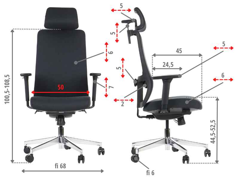 - Wysokość Fotela 101-109 cm