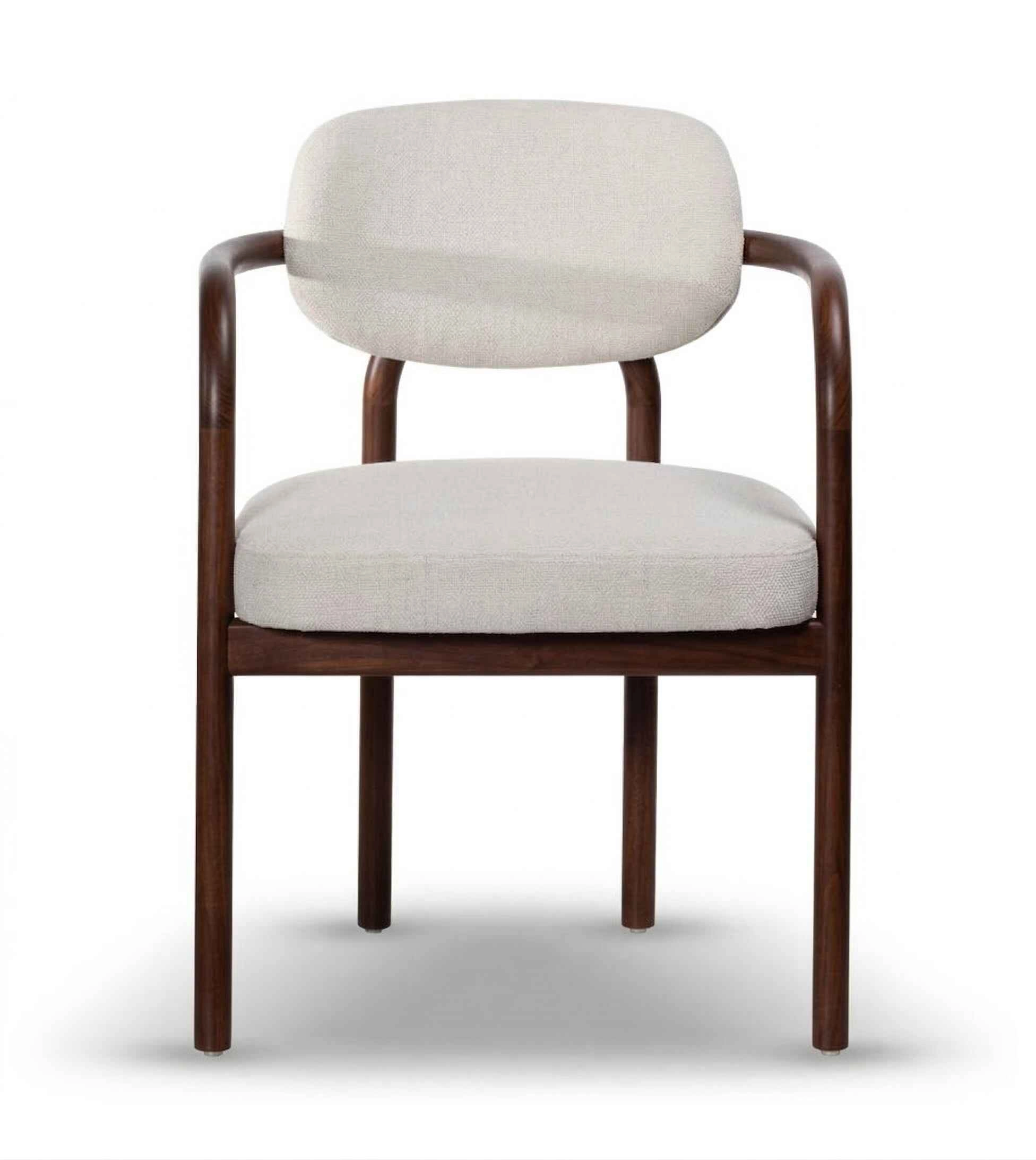 Model Triss łączy w sobie nowoczesną klasyczny styl z nowoczesnym design. Subtelne gięte podłokietniki i miękkie siedzisko tapicerowane wytrzymałą szenilową tkaniną tworzą harmonijną całość. Stabilne drewniane nogi, zapewniają krzesłu ponadczasowy design. Całość wykonana jest z wysokiej jakości materiałów w tym z drewna jesionowego – odpornego na codzienne użytkowanie, zachowuje estetyczny wygląd przez wiele lat.