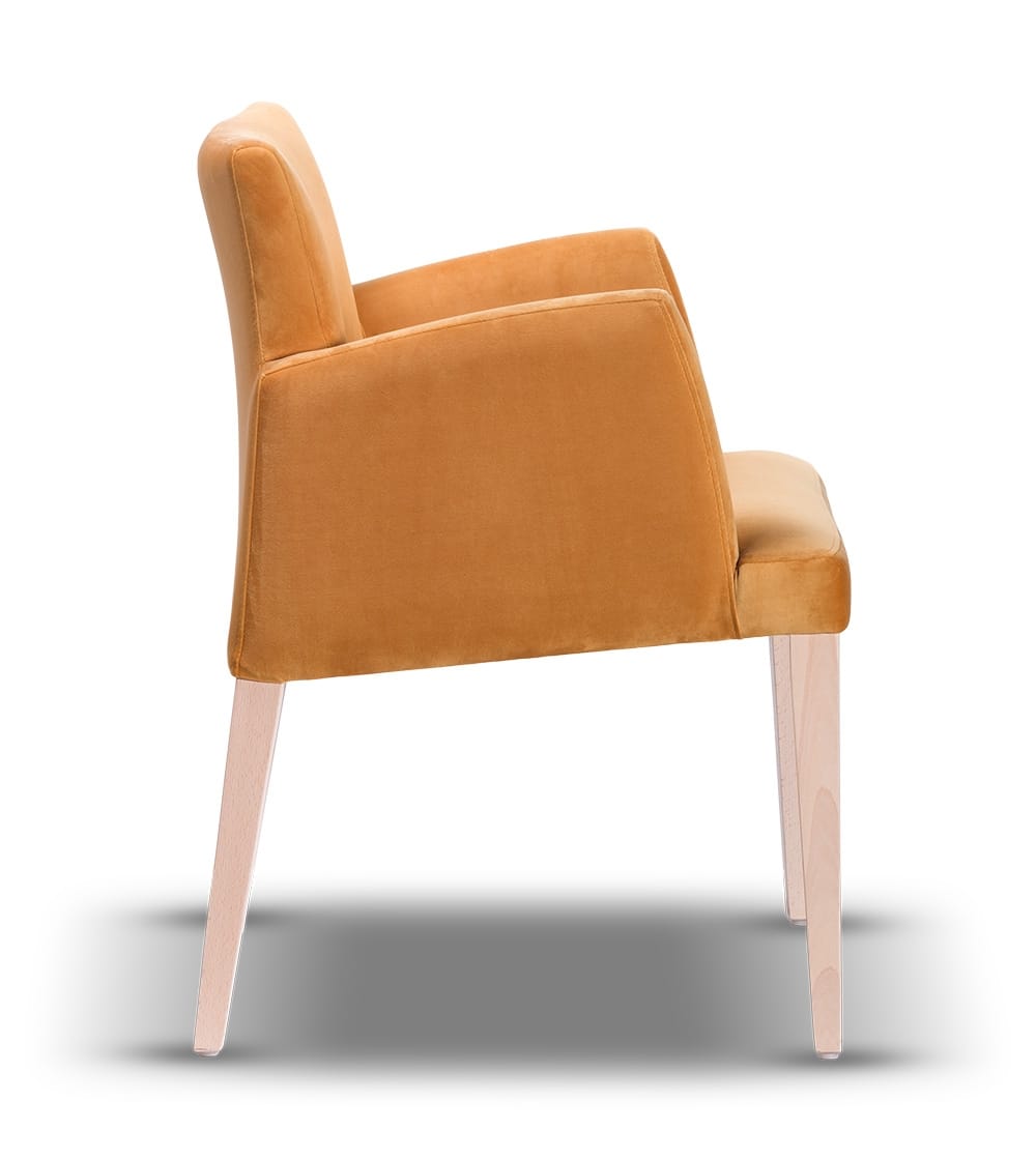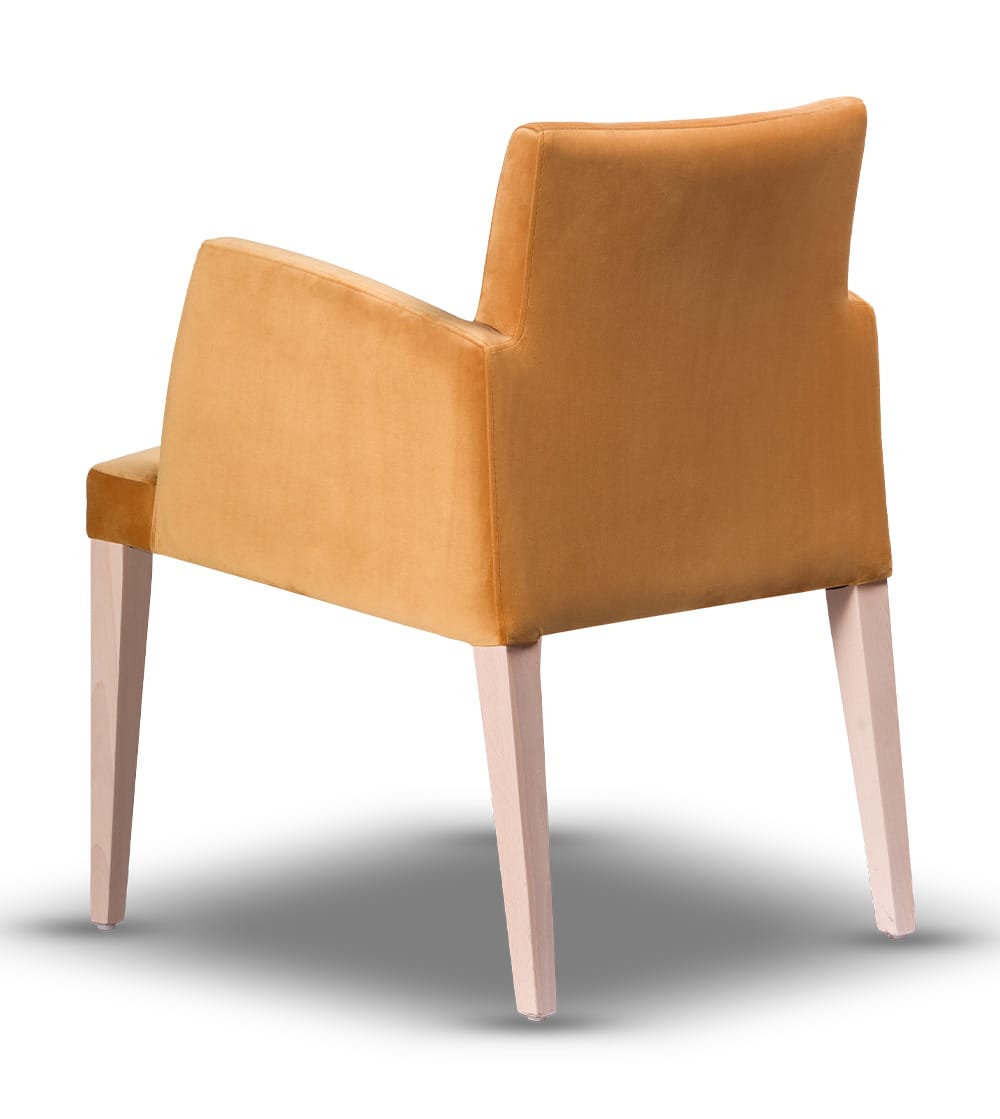 Model Magnus łączy niestandardową, nowoczesną formę z funkcjonalnością. Tapicerowane siedzisko i oparcie wykonane są z wysokiej jakości tkanin, które zachowują estetyczny wygląd nawet przy codziennym użytkowaniu. Smukłe nogi z drewna bukowego nadają niezwykłej klasy konstrukcji i podkreślają zaskakujący charakter mebla. Całość tworzy harmonijne połączenie stylu, wygody i solidności.