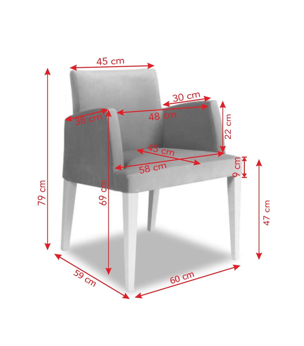 - Głębokość siedziska 45 cm