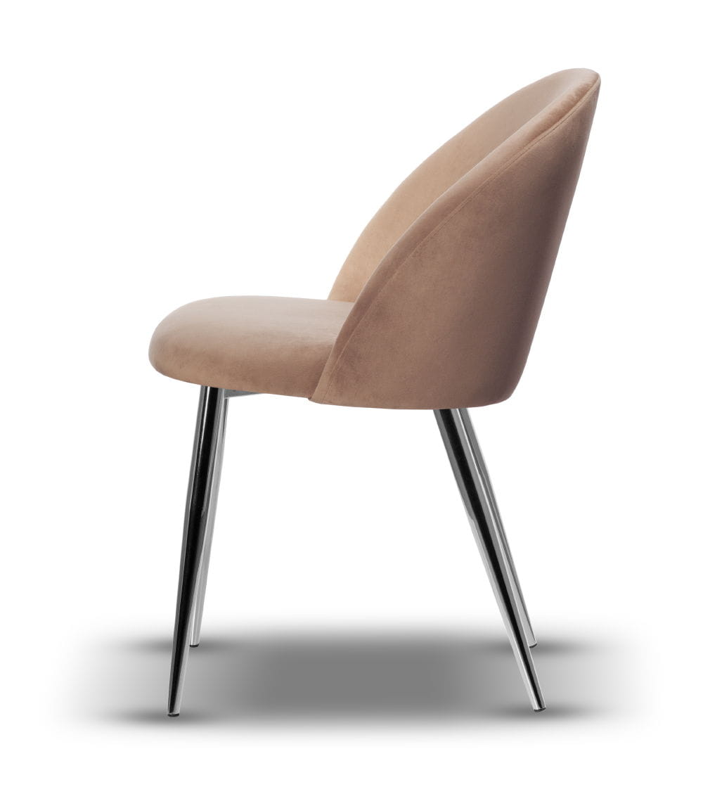 Krzesło Tapicerowane SOUL noga chrom z tkaniną welurową w kolorze ciemno beżowym