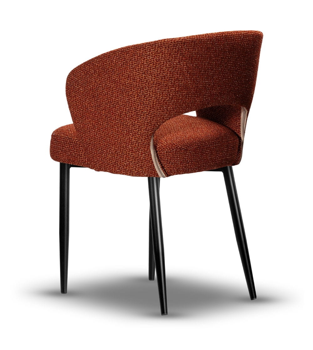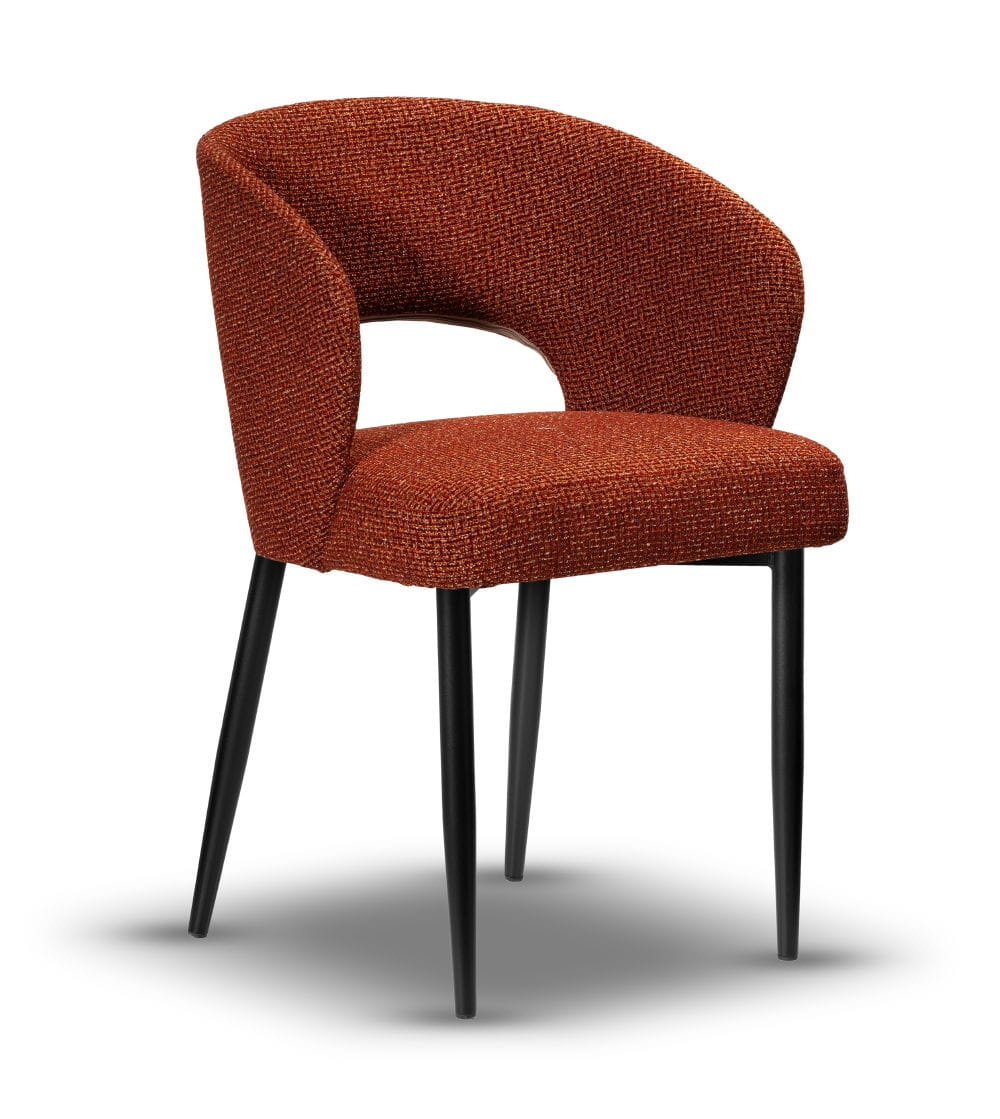 Model Carlo Personalizowany łączy w sobie nowoczesność, prostotę i wygodę. Subtelne oparcie i miękkie siedzisko tapicerowane wybraną tkaniną tworzą harmonijną całość. Smukłe nogi metalowe w kolorze czarnym podkreślają minimalistyczny design, jednocześnie zapewniając solidną stabilność. Całość wykonana jest z wysokiej jakości materiałów – odporna na codzienne użytkowanie, zachowuje estetyczny wygląd przez wiele lat.
