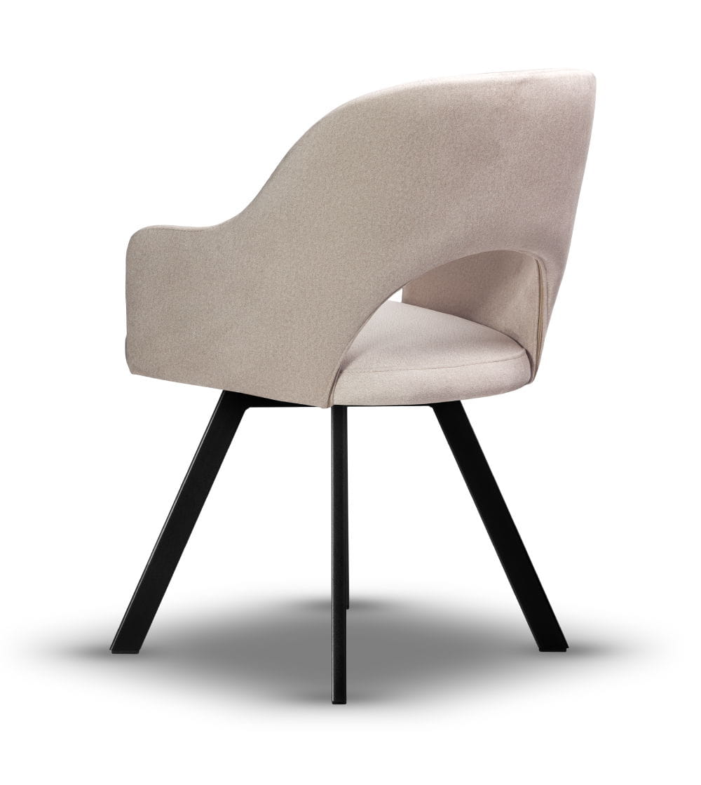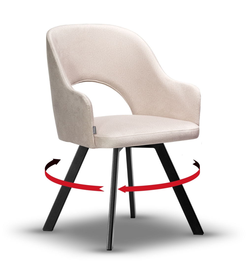 Krzesło Tapicerowane Obrotowe Zoya-2 noga czarna z tkaniną do wyboru i podłokietnikami, idealne do kuchni i jadalni w stylu japandi