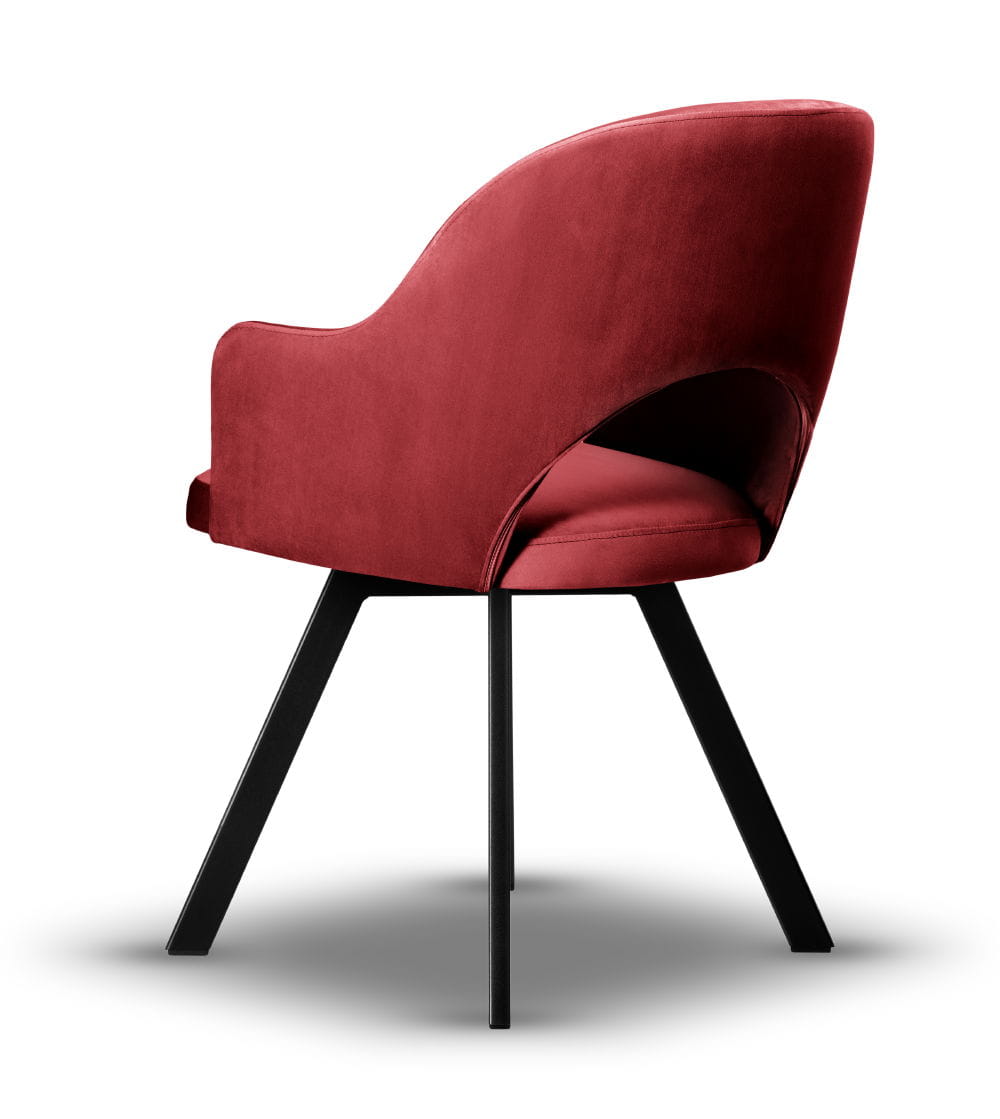 Stelaż wykonany z metalu malowanego proszkowo na kolor czarny gwarantuje stabilność i trwałość, a siedzisko z wysokiej jakości pianki T-30 zapewnia wysoki komfort użytkowania. Mechanizm obrotowy zwiększa funkcjonalność mebla. Krzesło dostępne jest w szerokiej gamie tkanin i kolorów, dzięki czemu z łatwością dopasujesz je do charakteru swojego wnętrza – od angielskiego po nowoczesny.