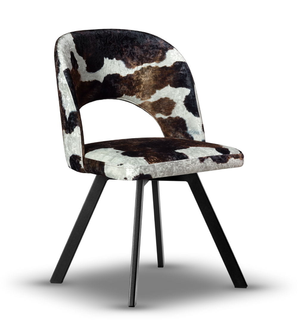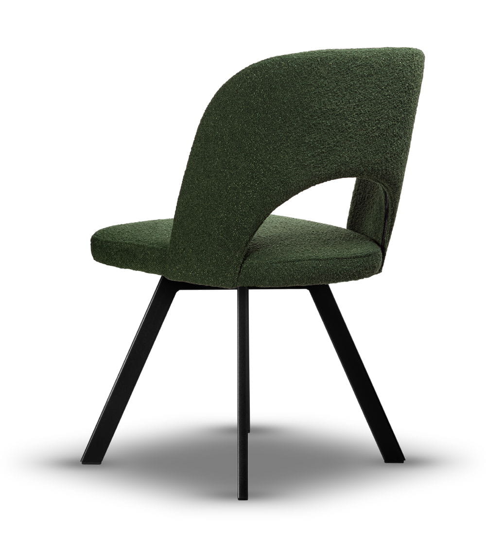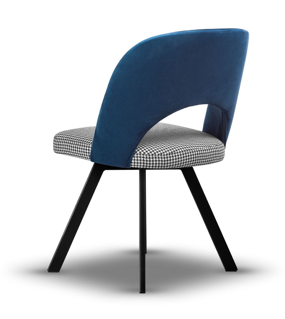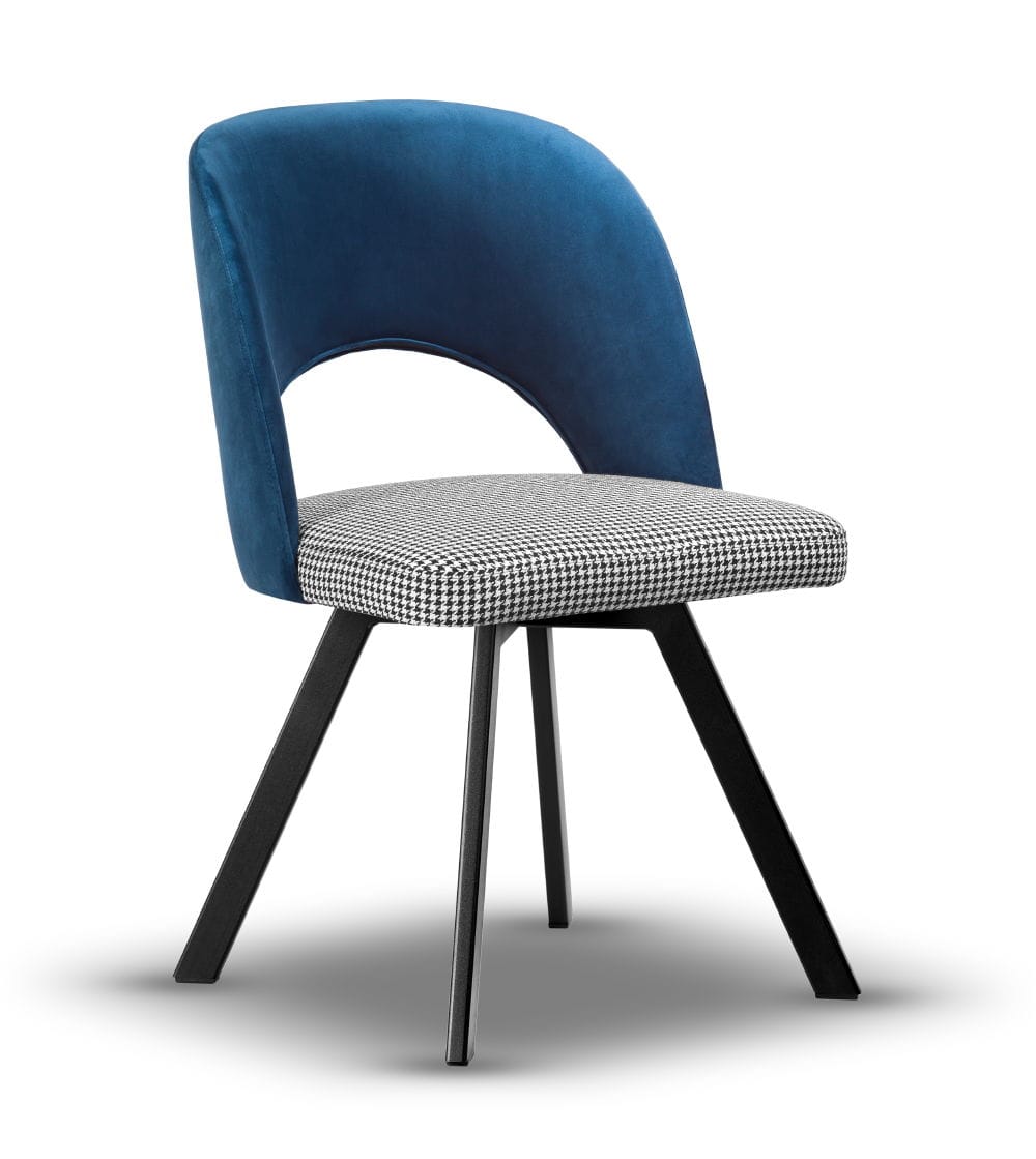 Stelaż wykonany z metalu malowanego proszkowo na kolor czarny gwarantuje stabilność i trwałość, a siedzisko z wysokiej jakości pianki T-30 zapewnia wysoki komfort użytkowania. Mechanizm obrotowy zwiększa funkcjonalność mebla. Krzesło dostępne jest w szerokiej gamie tkanin i kolorów, dzięki czemu z łatwością dopasujesz je do charakteru swojego wnętrza – od angielskiego po nowoczesny.