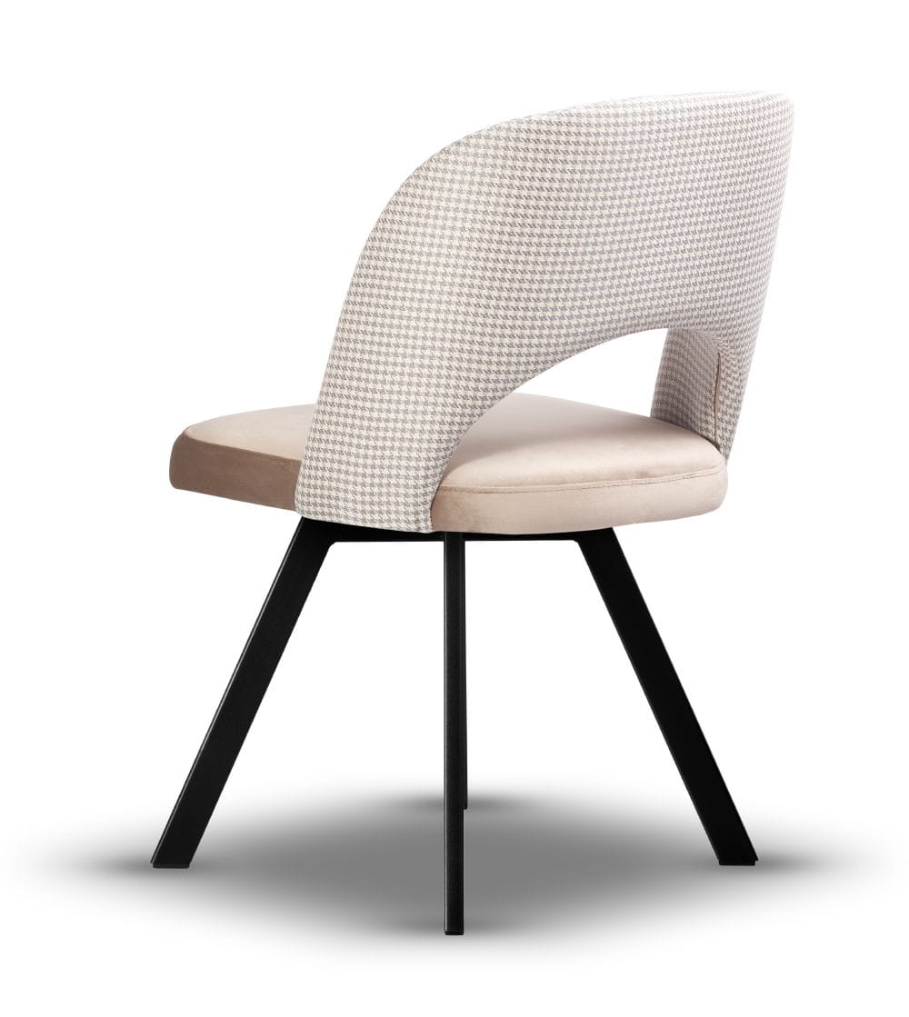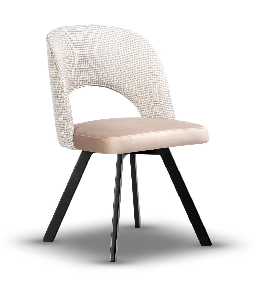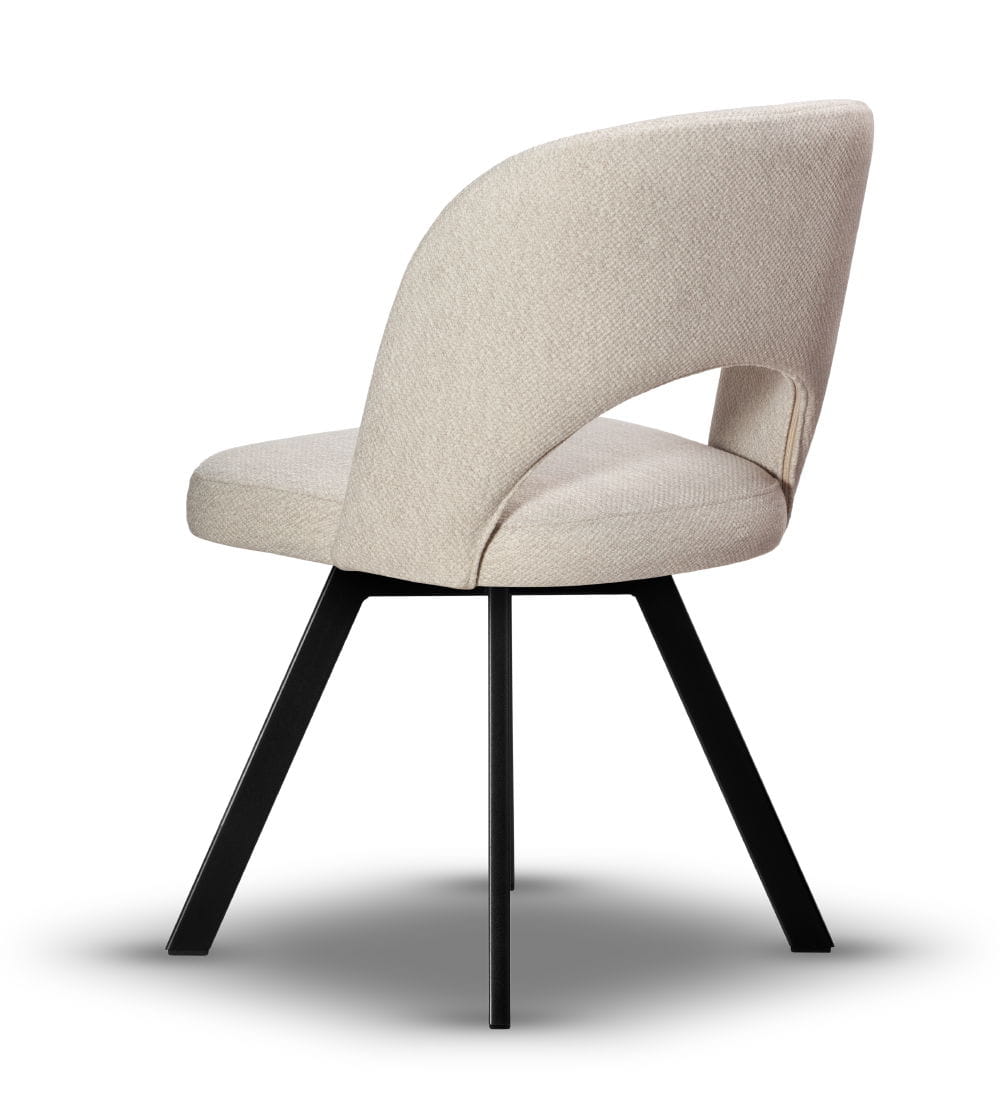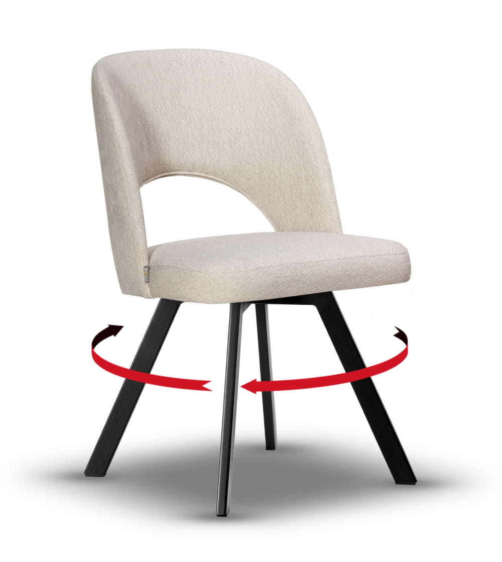 Krzesło Tapicerowane Obrotowe Zoya noga czarna z tkaniną do wyboru, idealne do kuchni i jadalni w stylu japandi