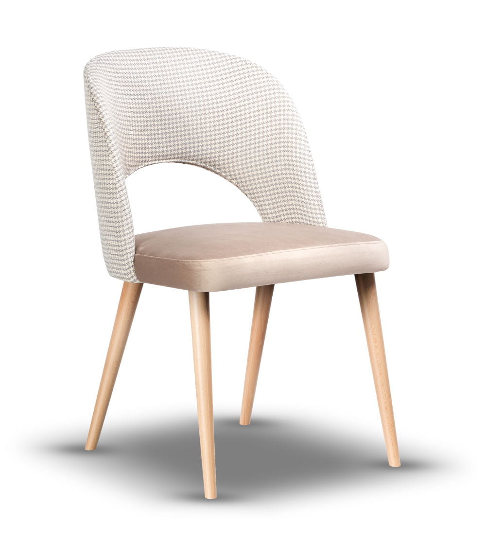 Model Zoya łączy prostą, nowoczesną formę z funkcjonalnością. Tapicerowane siedzisko wykonane jest z wysokiej jakości tkanin, które zachowują estetyczny wygląd nawet przy codziennym użytkowaniu. Smukłe nogi z drewna bukowego nadają lekkości konstrukcji i podkreślają minimalistyczny charakter mebla. Całość tworzy harmonijne połączenie stylu, wygody i solidności.