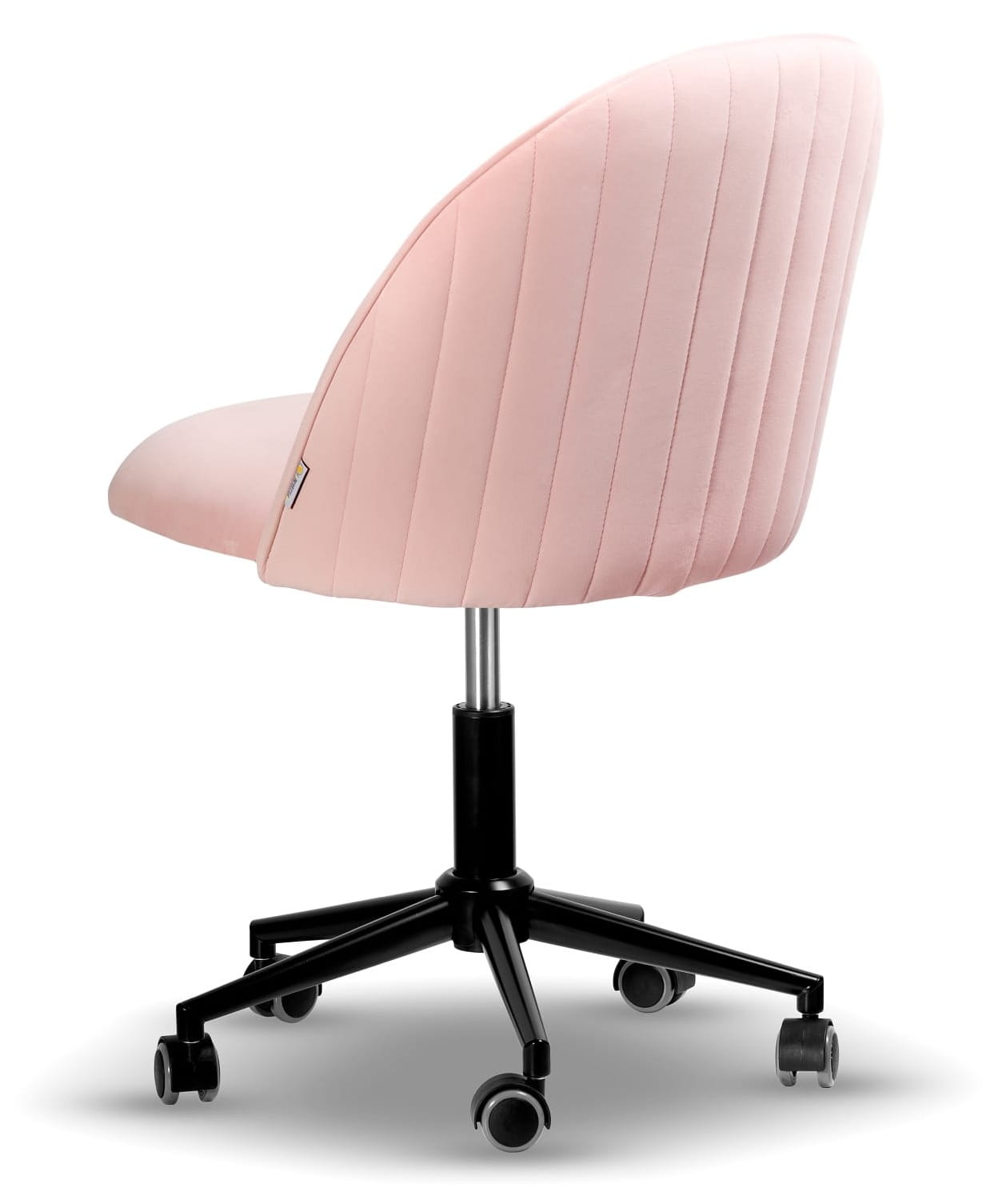 Welurowa i przyjemna w dotyku tkanina w połączeniu z miękką pianką tapicerską sprawią że korzystanie z naszego krzesła będzie twoją codzienną koniecznością. Łatwa w czyszczeniu tkanin typu velvet/welur z jakiej został wykonany fotel sprawia, że żadne zabrudzenie nie będzie już problemem. Jest to bardzo przydatna właściwość przy codziennym użytkowaniu. Brak podłokietników to kolejna już zaleta o jakiej należy wspomnieć. Obrotowe siedzisko, płynna regulacja wysokości oraz kółka z nakładką kauczukową to dodatkowe pozytywnie cech całości - idealne na podłogi panelowe, terakotę gres, nie rysują podłogi i płynnie się przesuwają