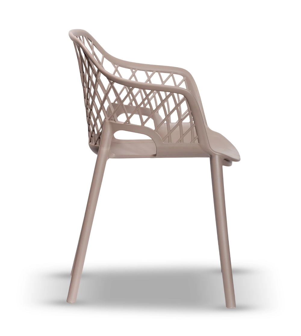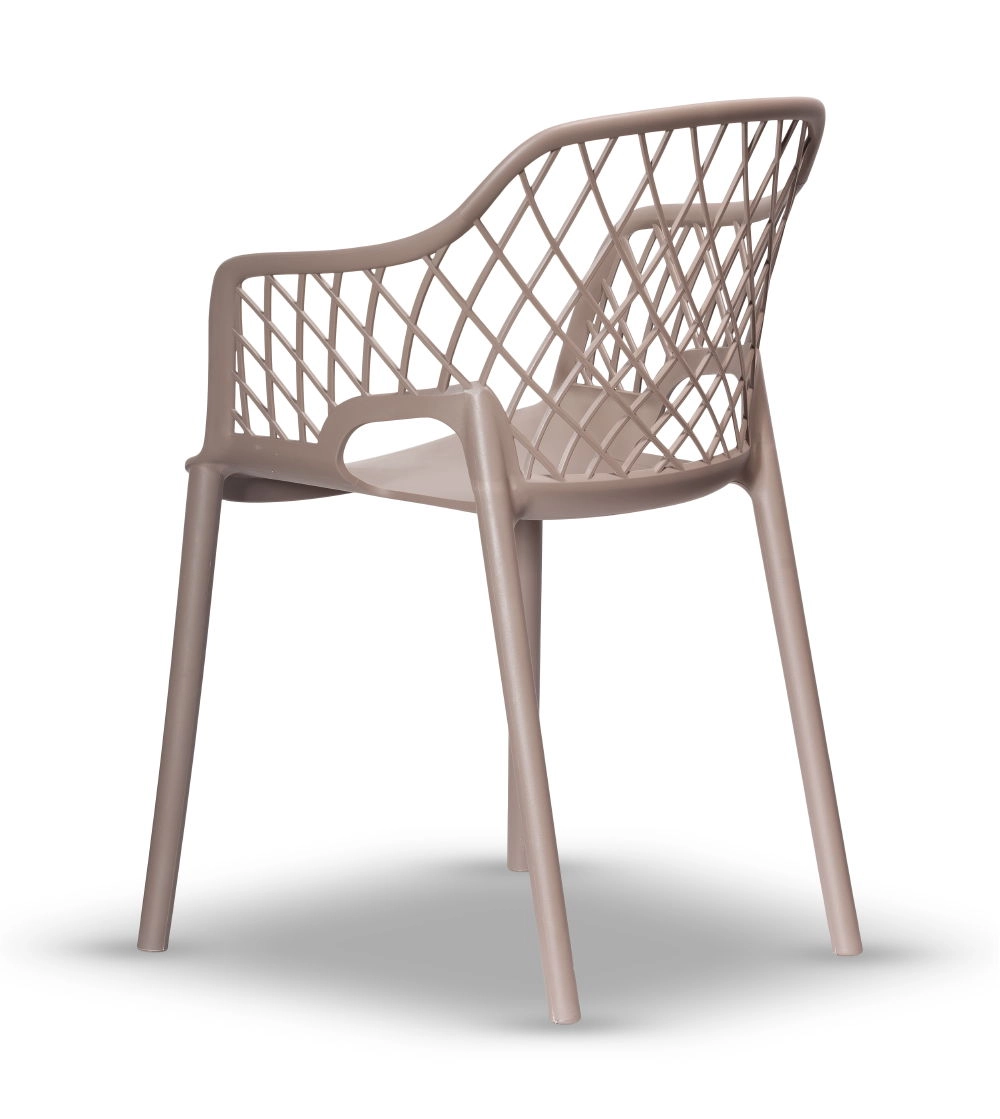 Krzesło z tworzywa Chico-2 taupe z podłokietnikami, idealne do ogrodu i na taras