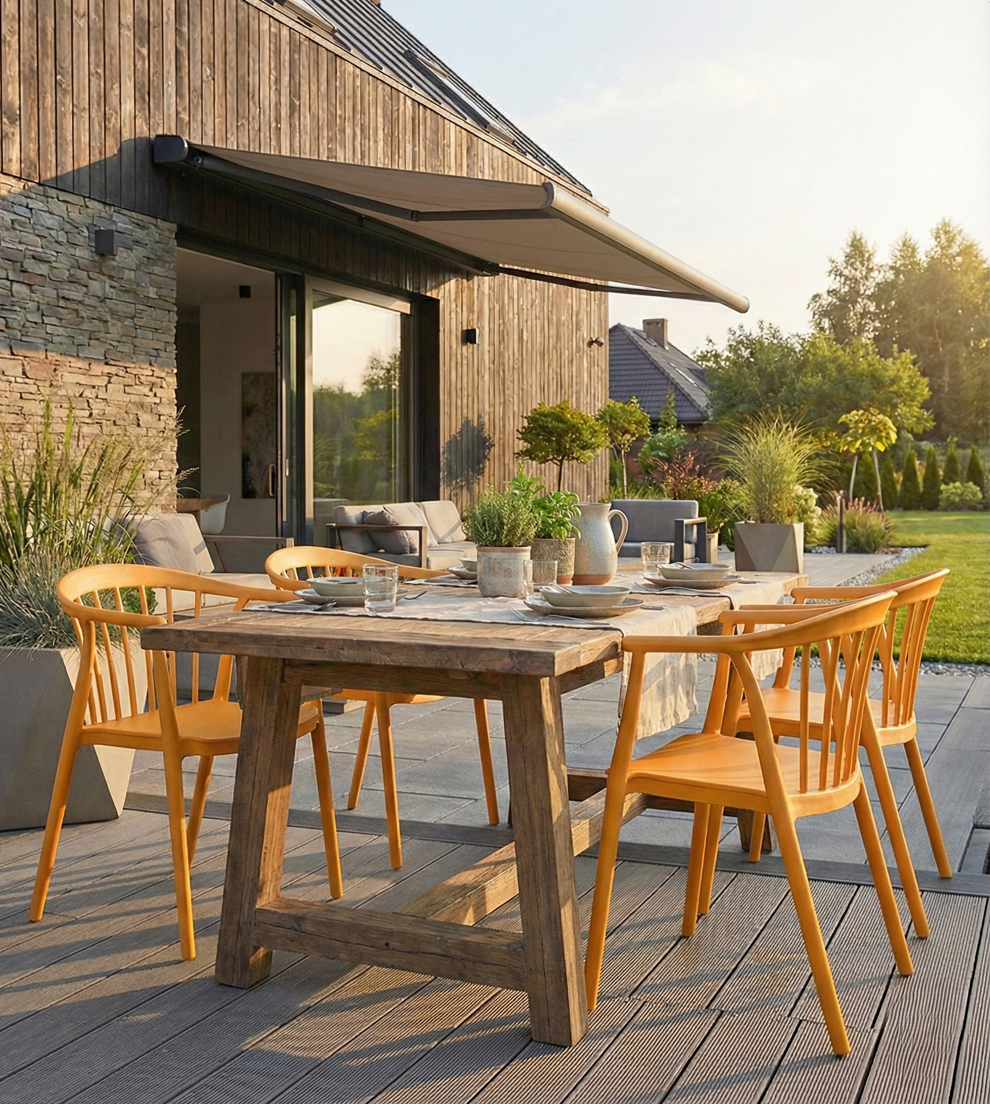 Krzesło Ogrodowe Riva żółty, wytrzymałe krzesło z tworzywa na taras, do ogrodu i na balkon
