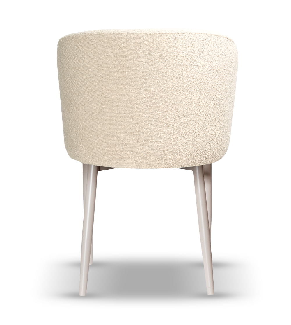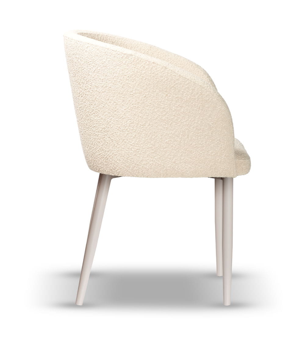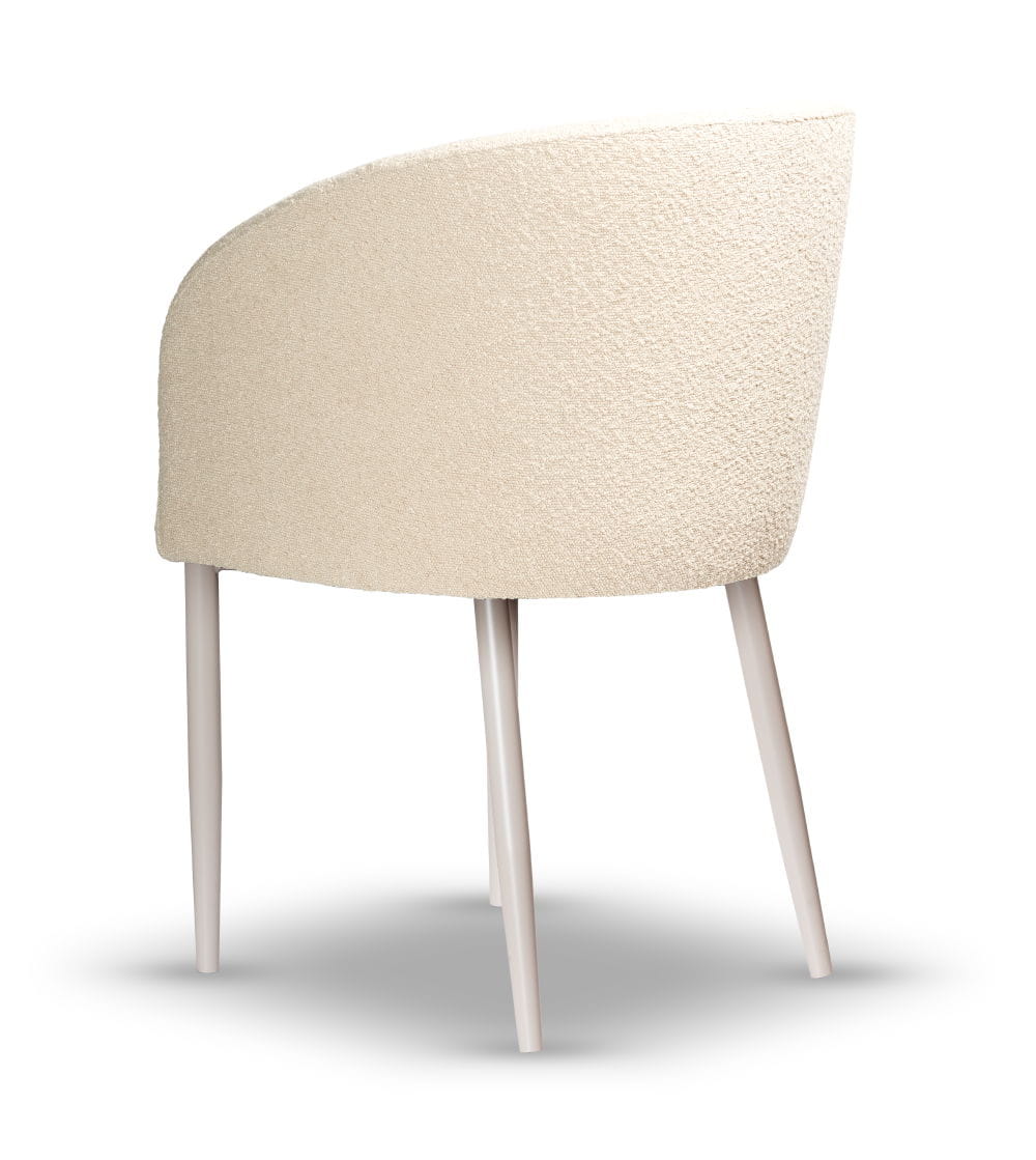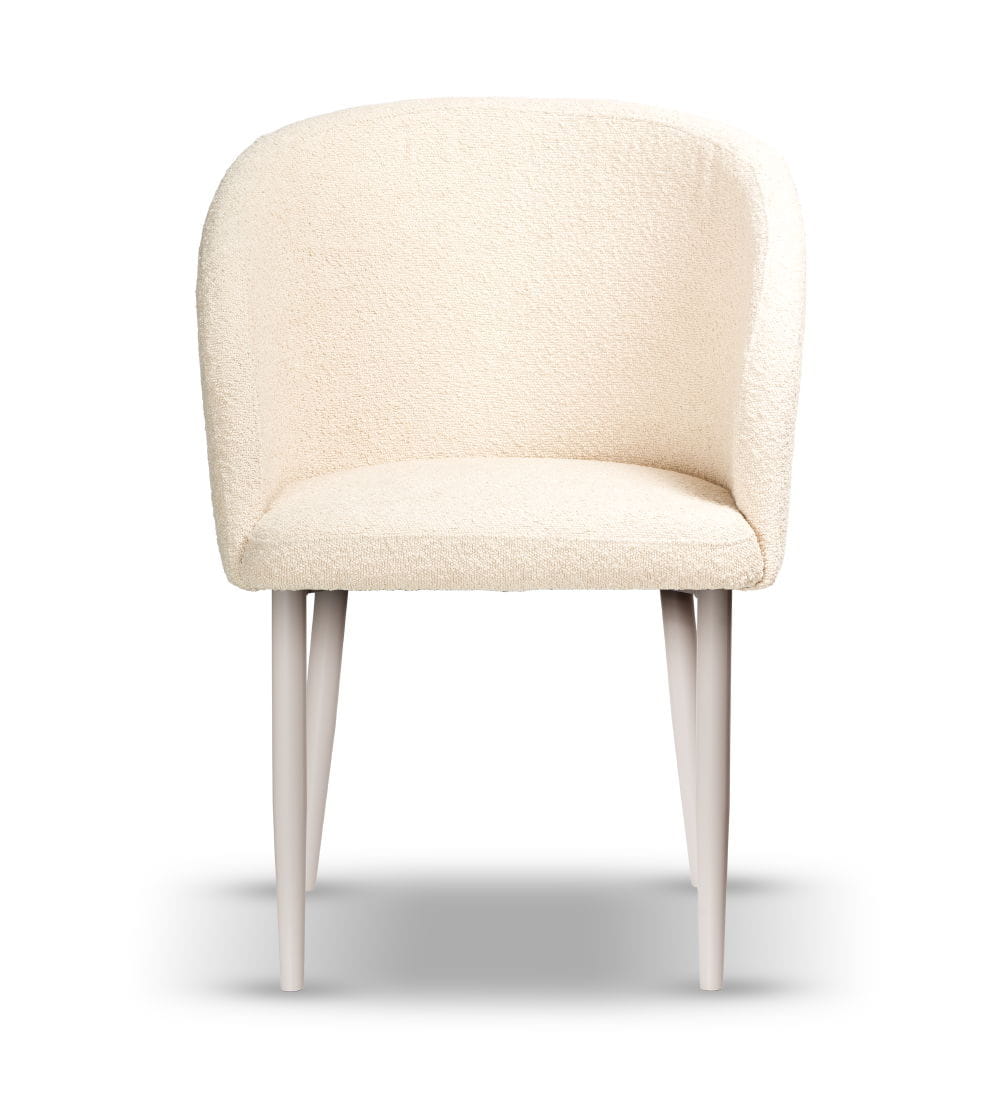 Model Carine łączy prostą, nowoczesną formę z funkcjonalnością. Tapicerowane siedzisko i oparcie wykonane są z wysokiej jakości tkanin, które zachowują estetyczny wygląd nawet przy codziennym użytkowaniu. Smukłe nogi z kaszmirowego metalu nadają lekkości konstrukcji i podkreślają minimalistyczny charakter mebla. Całość tworzy harmonijne połączenie stylu, wygody i solidności.