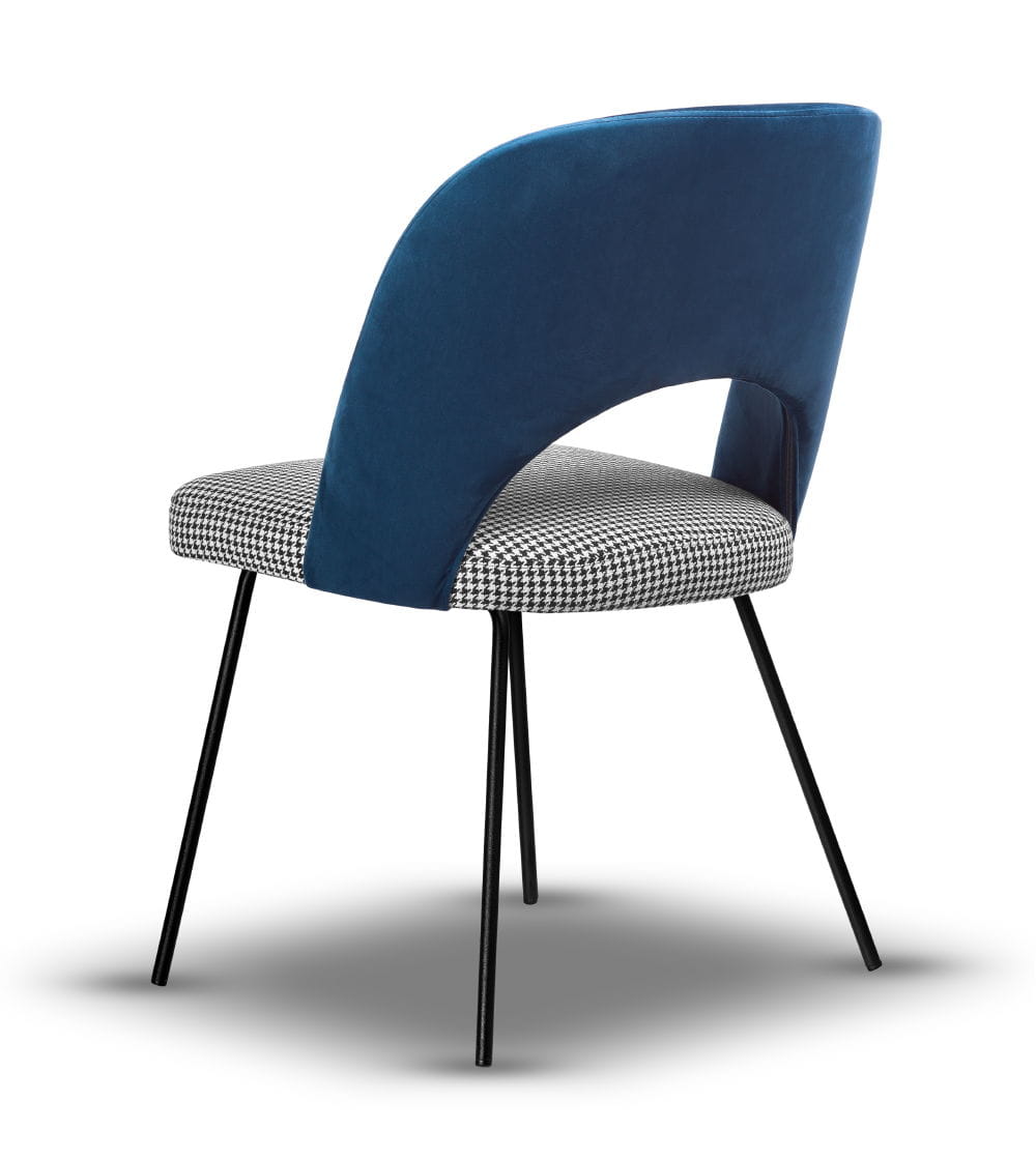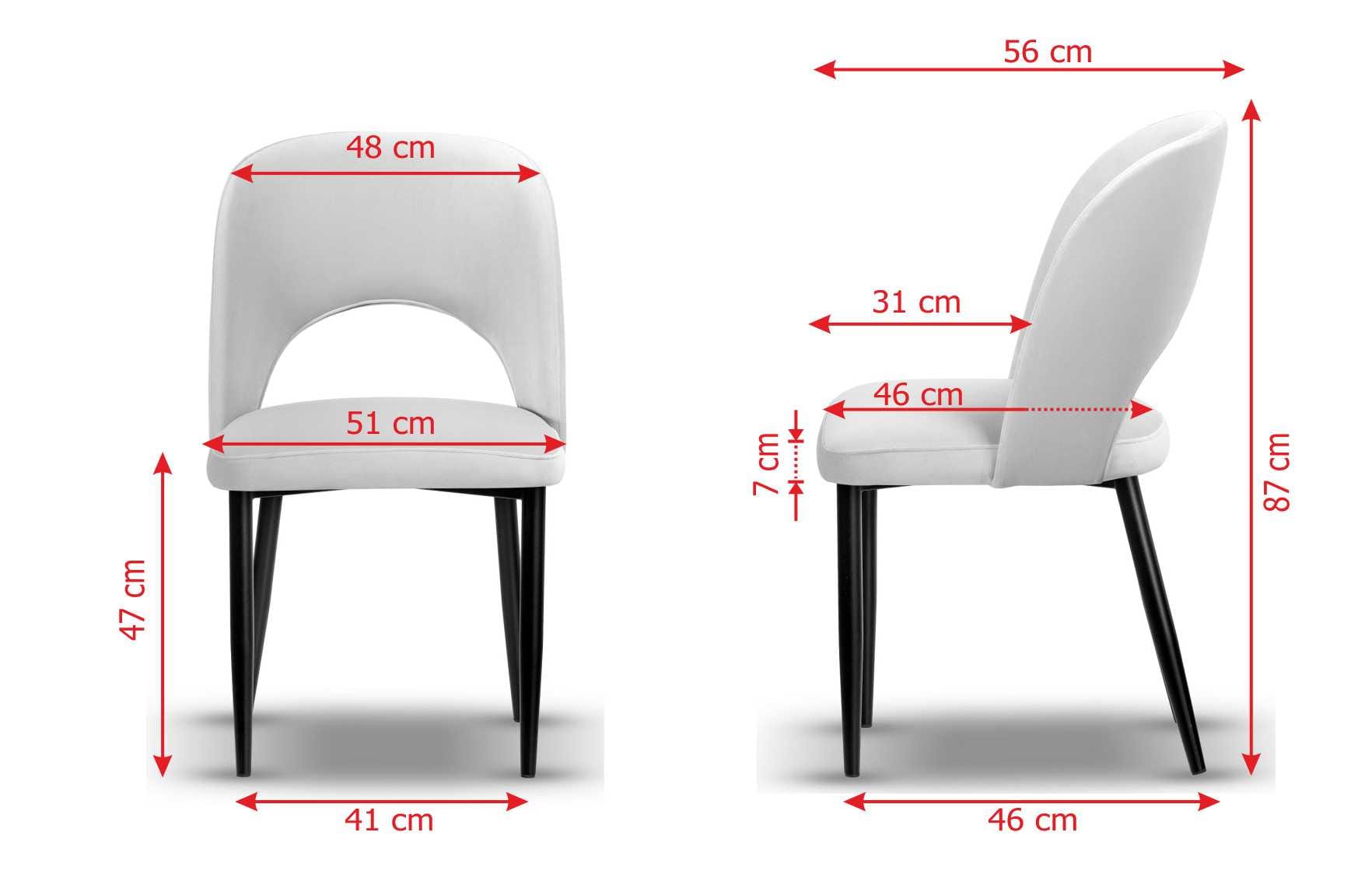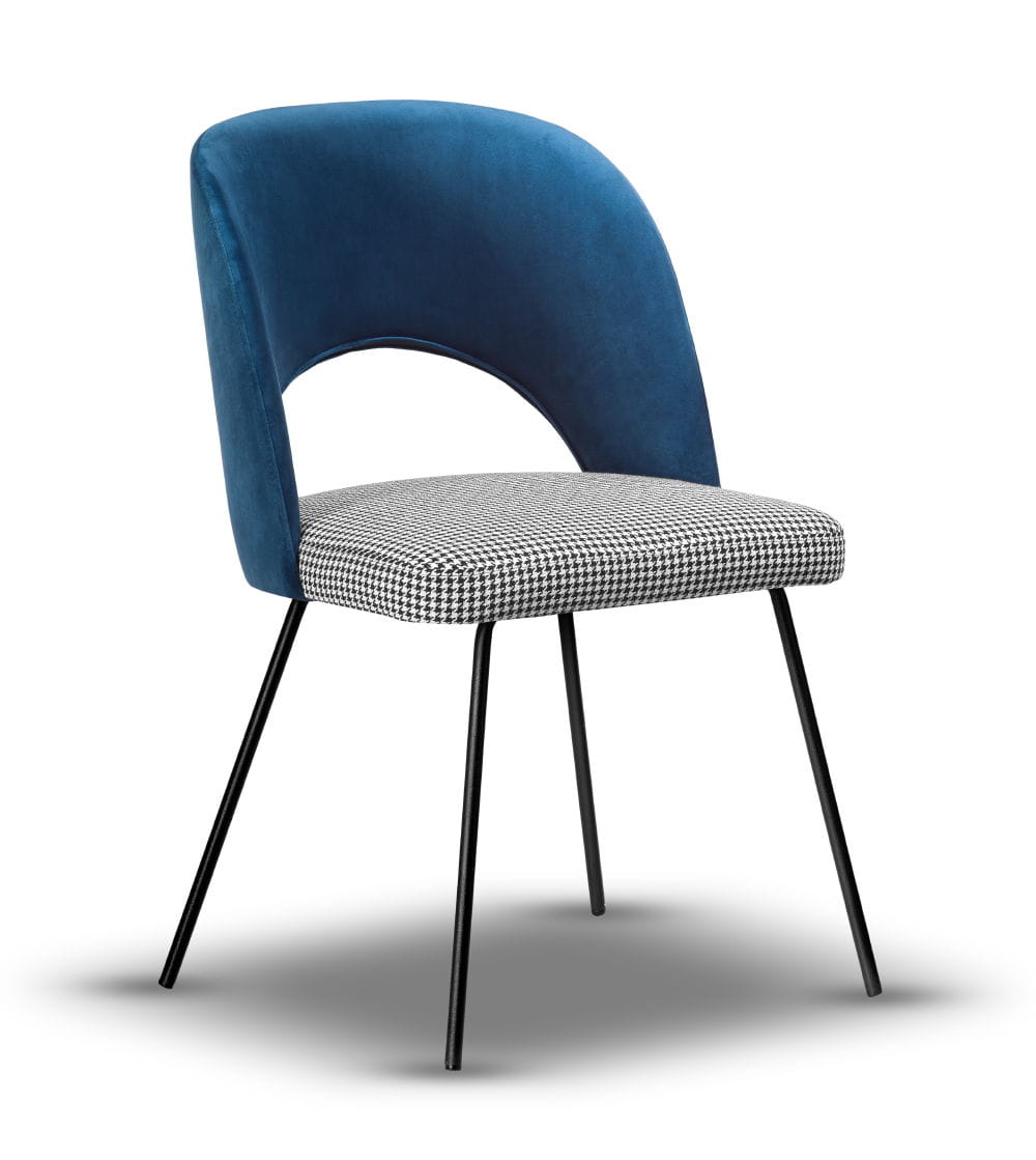 Stelaż wykonany z metalu malowanego proszkowo na kolor czarny gwarantuje stabilność i trwałość, a siedzisko z wysokiej jakości pianki T-30 zapewnia wysoki komfort użytkowania. Krzesło dostępne jest w szerokiej gamie tkanin i kolorów, dzięki czemu z łatwością dopasujesz je do charakteru swojego wnętrza – od angielskiego po nowoczesny.