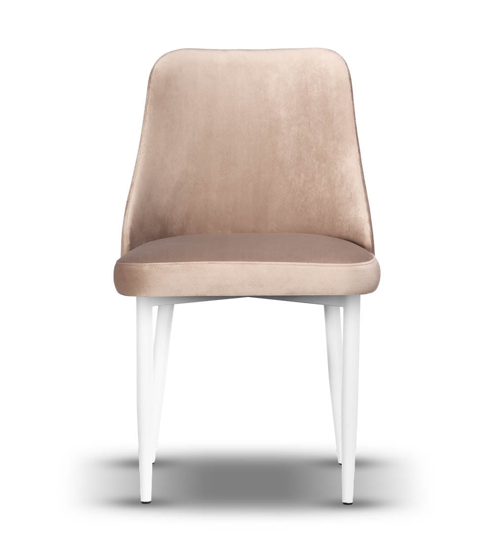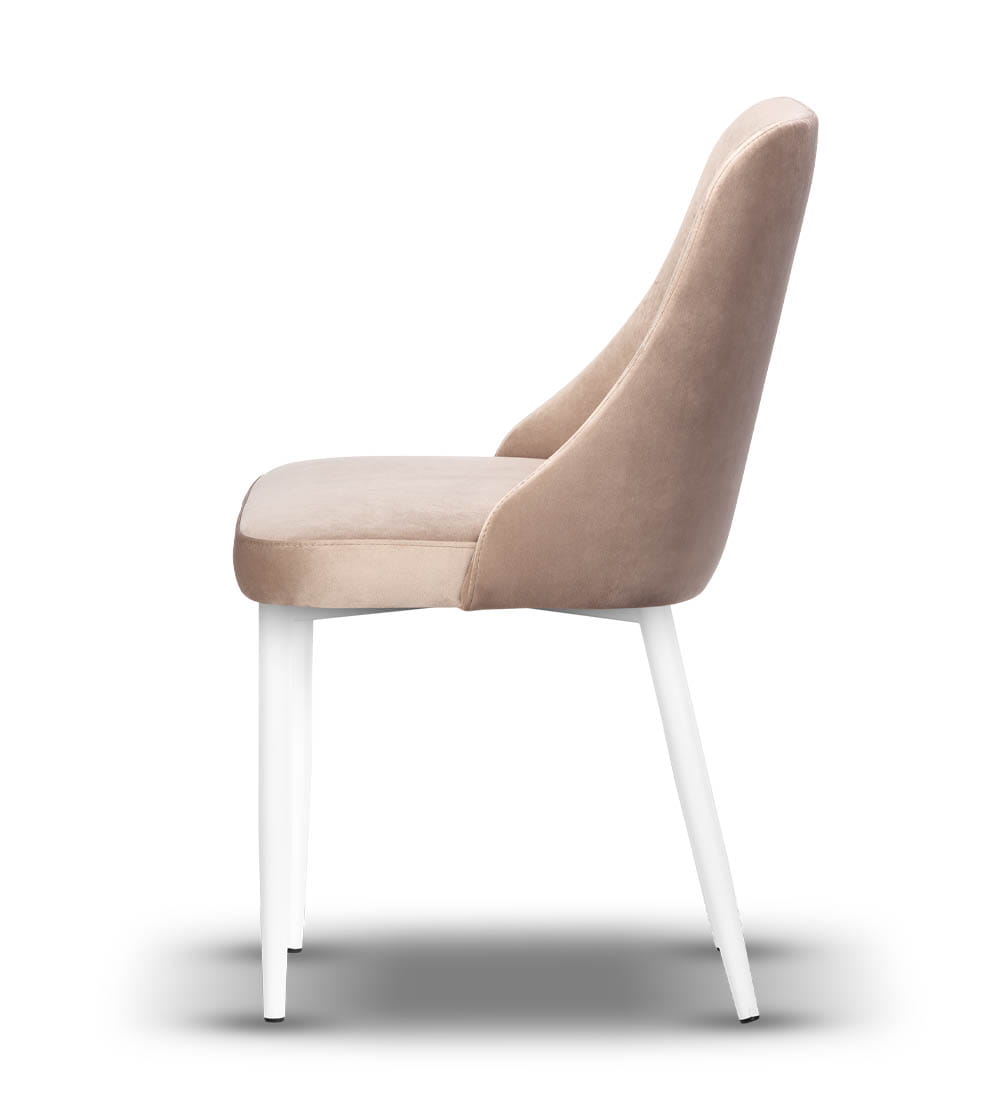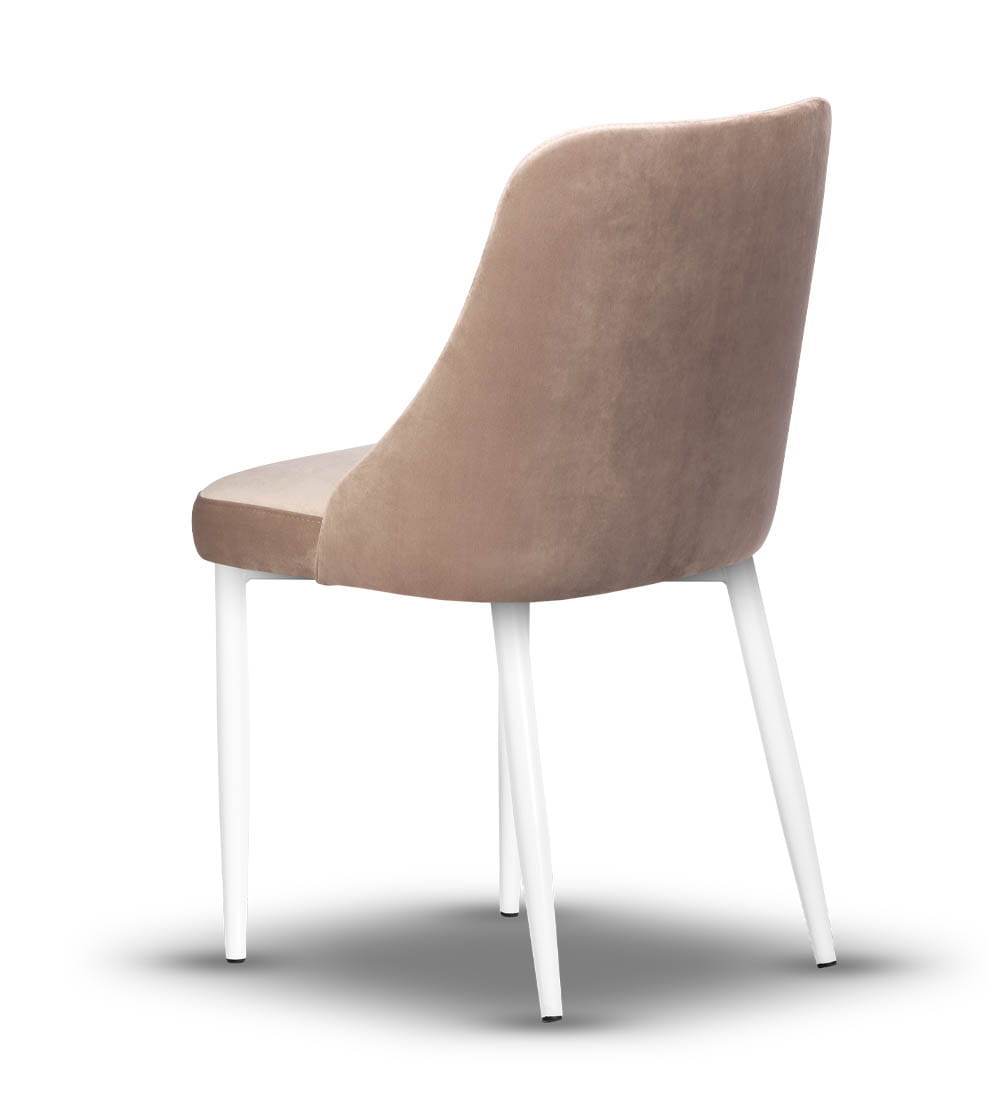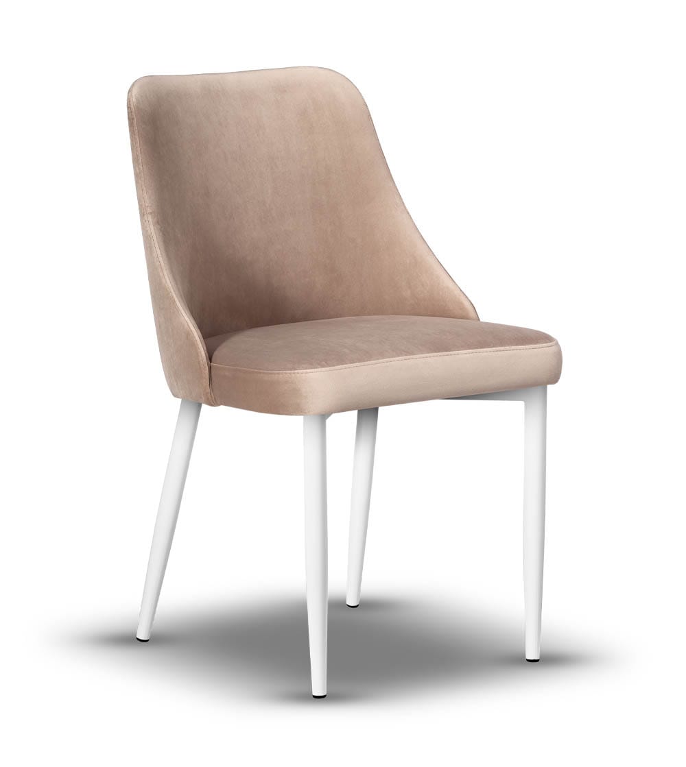 Model Natalia o swoim prostym przekroju idealnie sprawdzi się w każdej aranżacji. Tapicerowane siedzisko i oparcie wykonane są z wysokiej jakości tkanin, które zachowują estetyczny wygląd nawet przy codziennym użytkowaniu. Smukłe nogi z białego metalu nadają lekkości konstrukcji i podkreślają minimalistyczny charakter mebla. Całość tworzy harmonijne połączenie stylu, wygody i solidności.