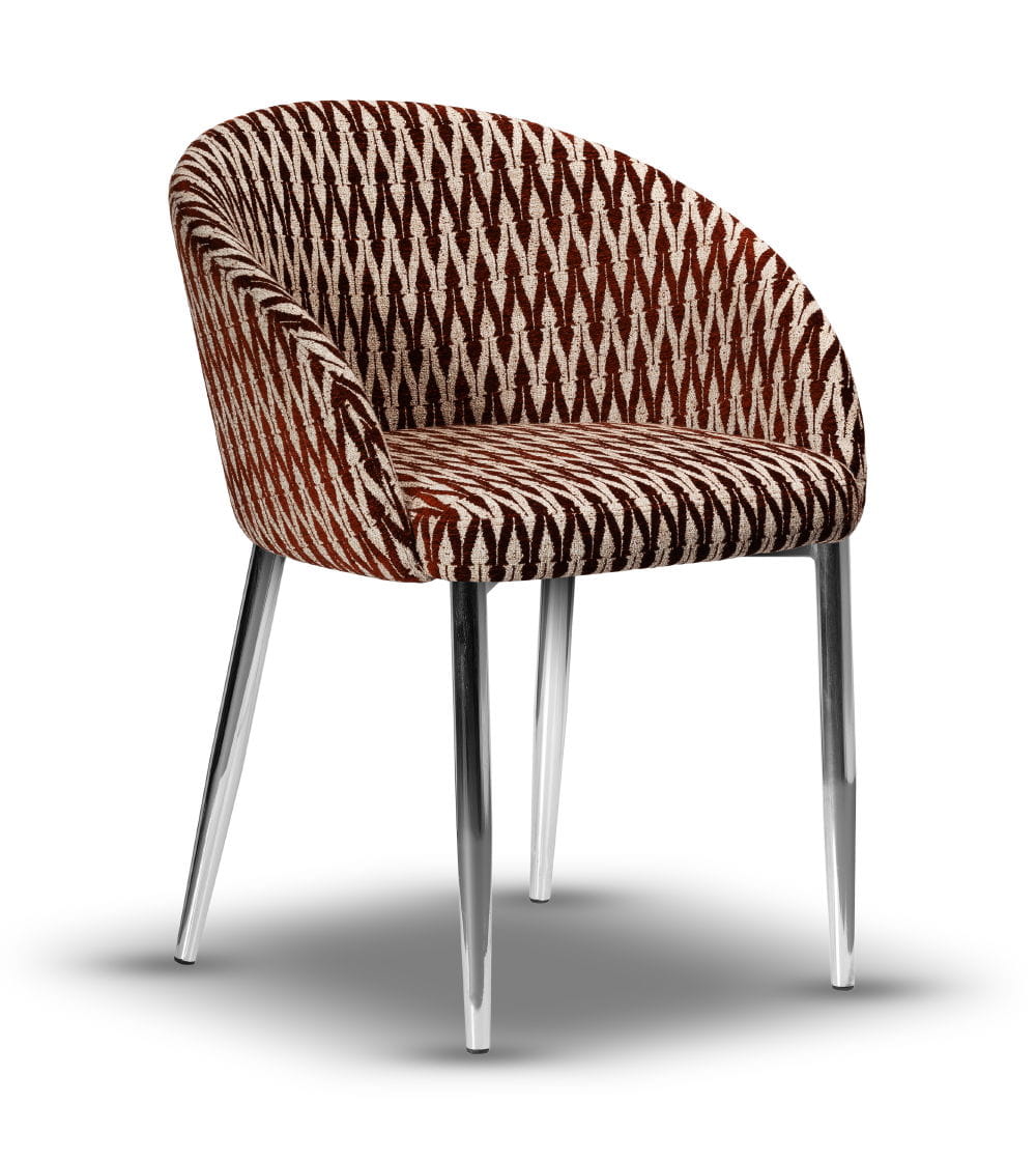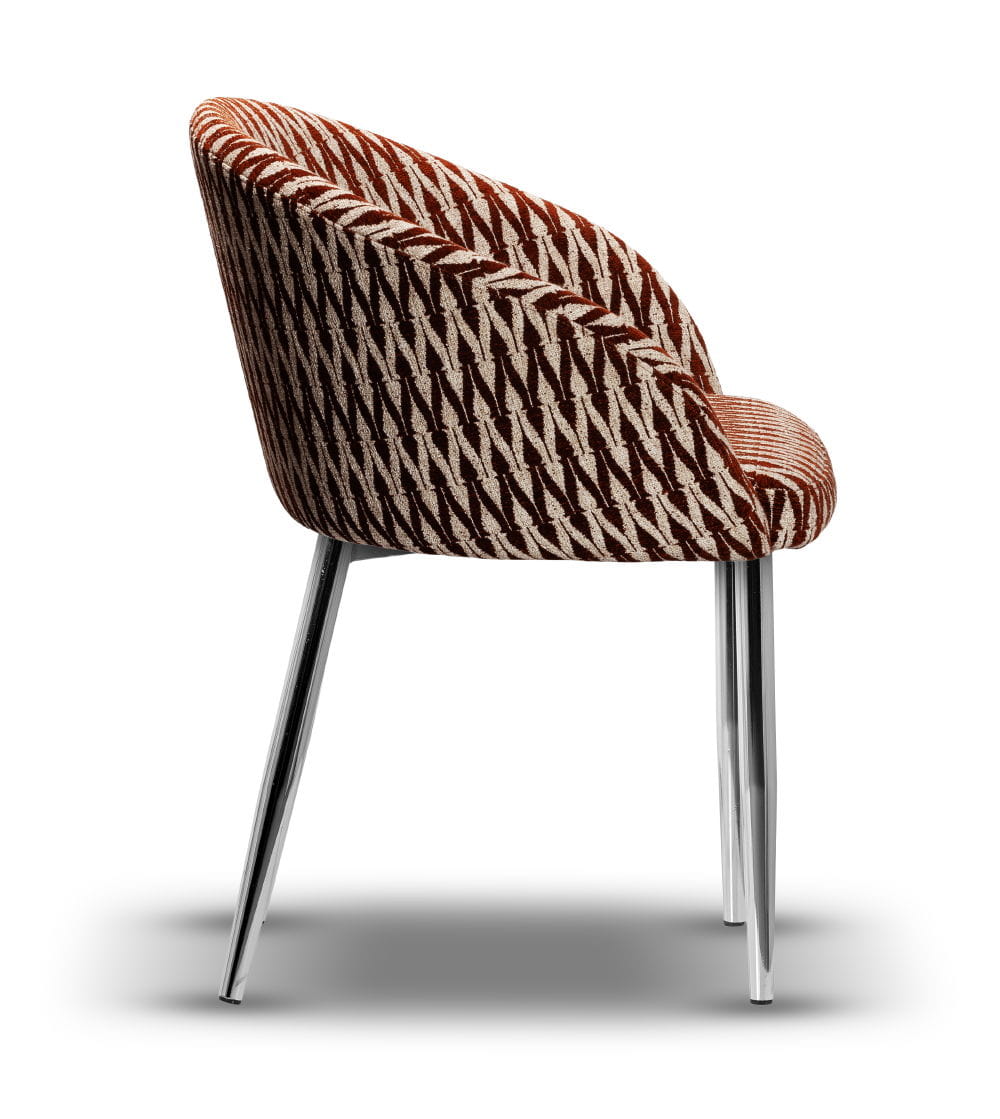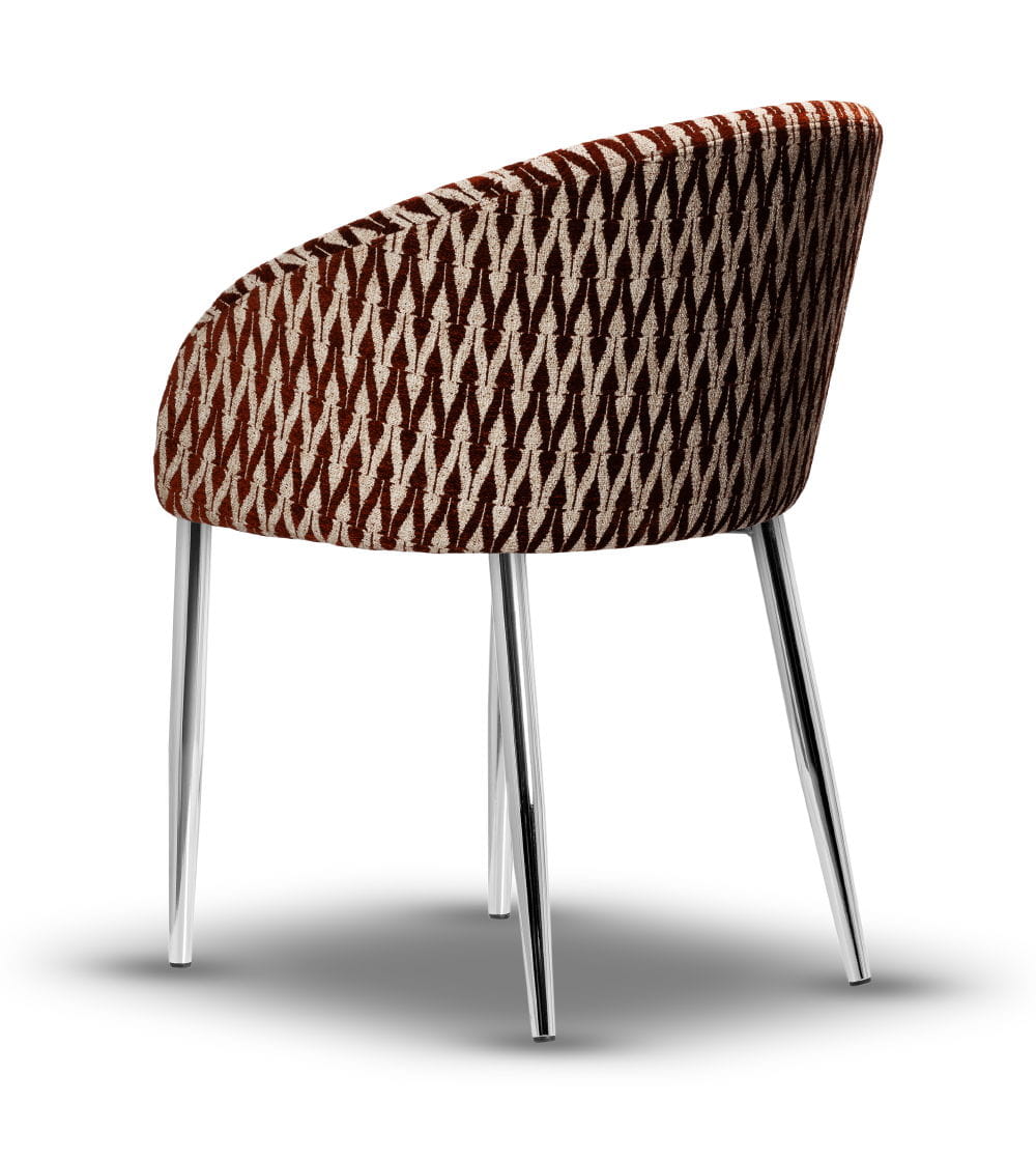 Stelaż wykonany z metalu powleczonego warstwą w kolorze chromu gwarantuje stabilność i trwałość, a siedzisko z wysokiej jakości pianki HR-35 zapewnia wysoki komfort użytkowania. Krzesło dostępne jest w szerokiej gamie tkanin i kolorów, dzięki czemu z łatwością dopasujesz je do charakteru swojego wnętrza – od loft po nowoczesny.