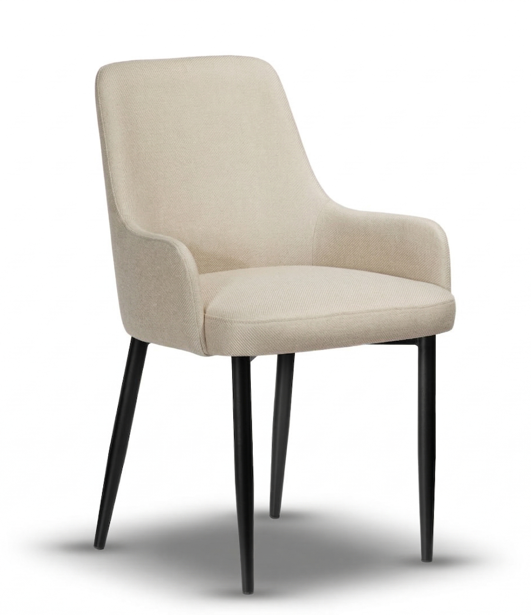 Model Giulio łączy niezwykłą, nowoczesną formę z funkcjonalnością. Tapicerowane siedzisko i oparcie wykonane są z wysokiej jakości tkanin, które zachowują estetyczny wygląd nawet przy codziennym użytkowaniu. Smukłe nogi z czarnego metalu nadają lekkości konstrukcji i podkreślają minimalistyczny charakter mebla. Całość tworzy harmonijne połączenie stylu, wygody i solidności.