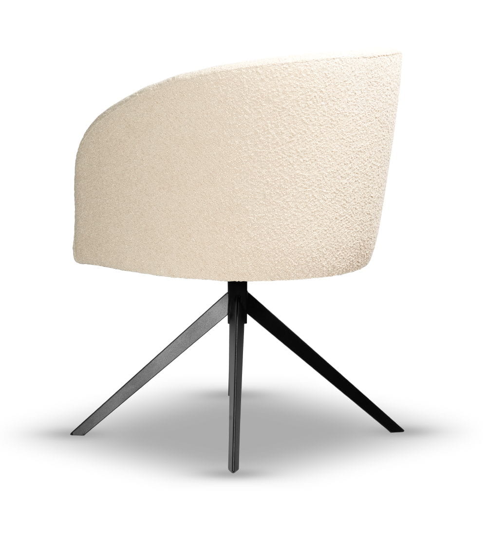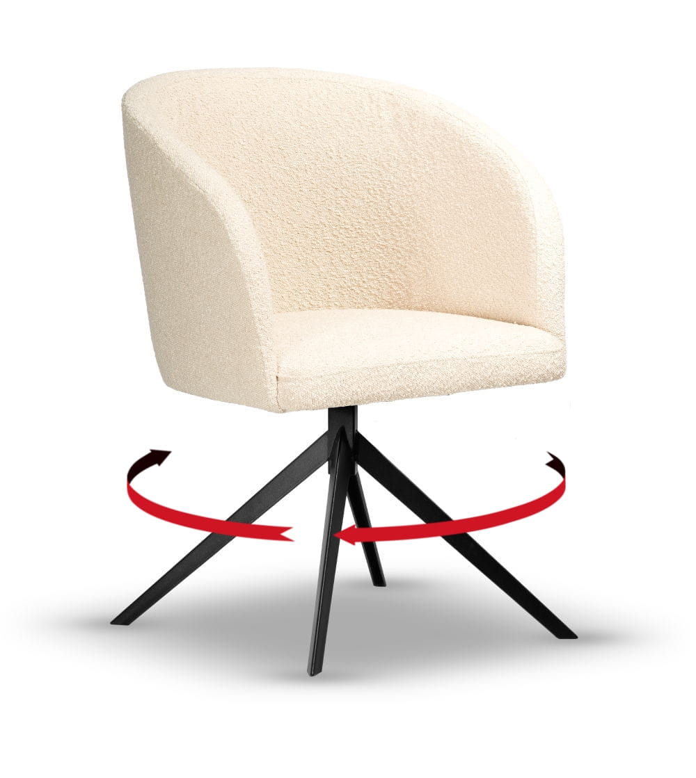 Stelaż wykonany z metalu malowanego proszkowo na czarno gwarantuje stabilność i trwałość, a siedzisko z wysokiej jakości pianki T-30 zapewnia wysoki komfort użytkowania. Mechanizm obrotowy znacząco zwiększa funkcjonalność mebla. Krzesło dostępne jest w szerokiej gamie tkanin i kolorów, dzięki czemu z łatwością dopasujesz je do charakteru swojego wnętrza – od loft po nowoczesny.