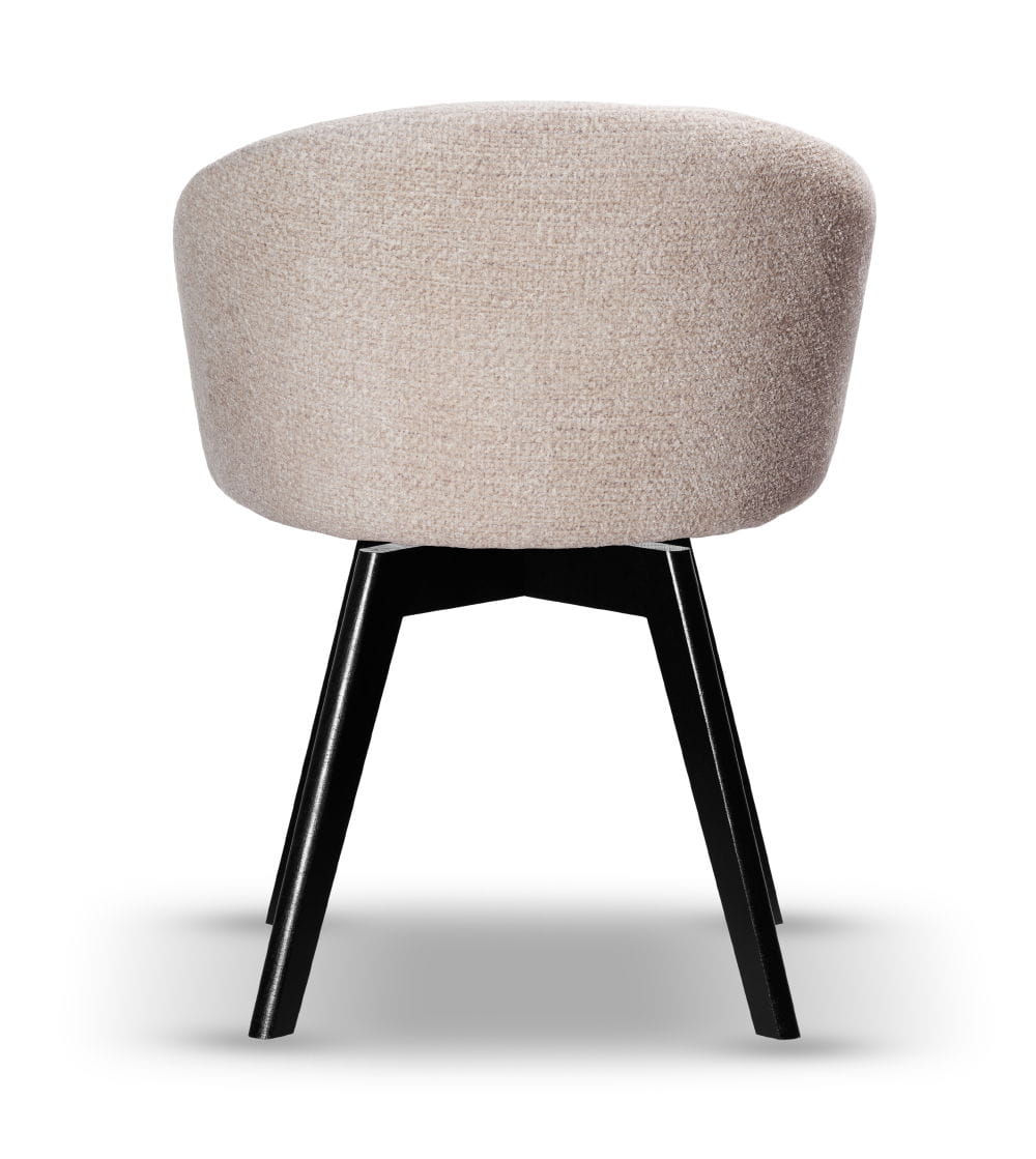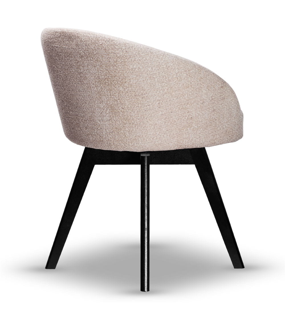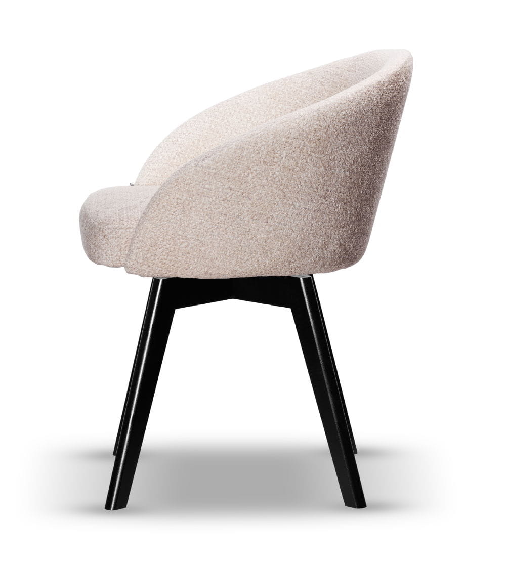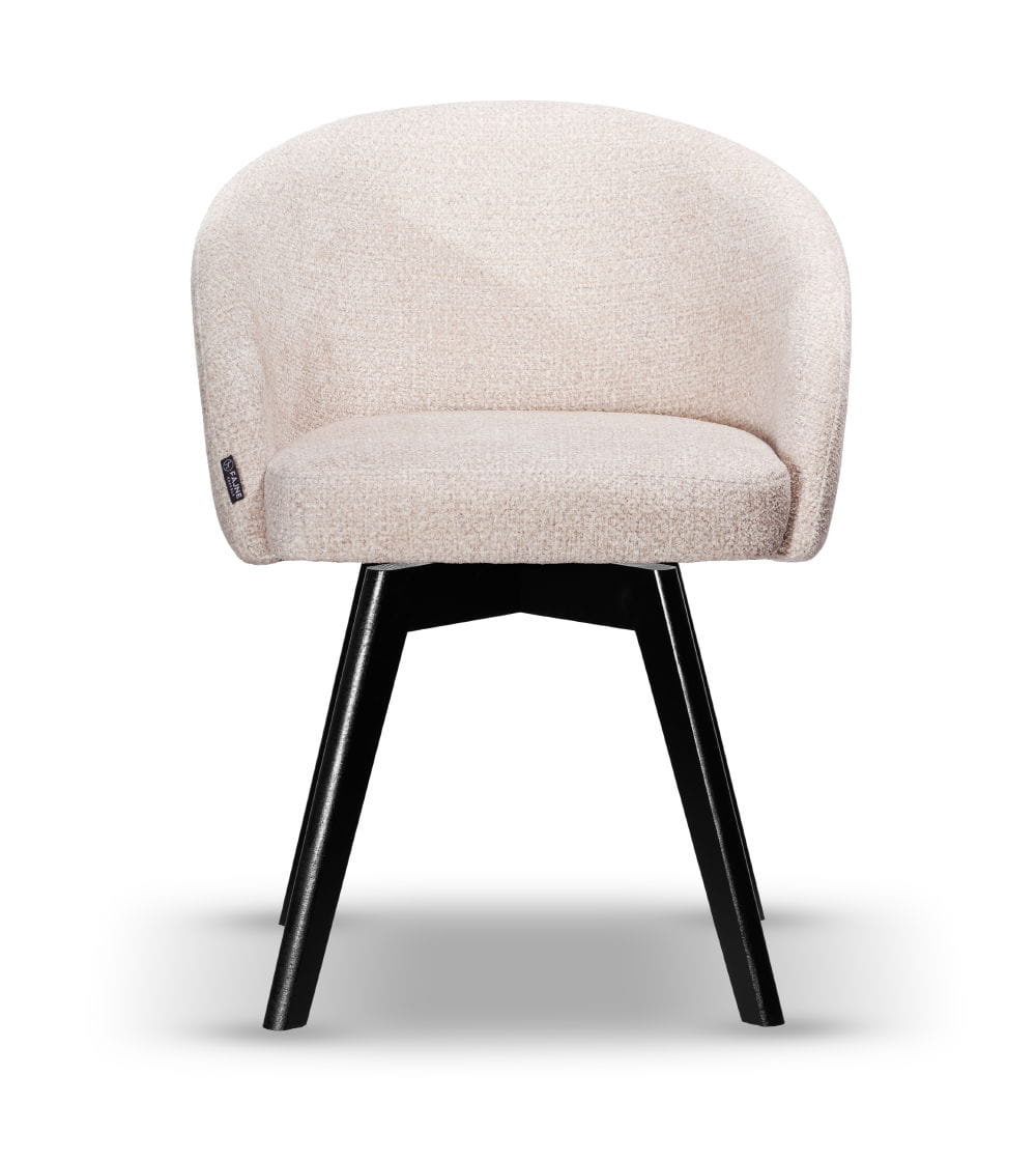 - Pełna nazwa produktu Krzesło obrotowe do jadalni tapicerowane FLOW beżowe noga drewniana czarna