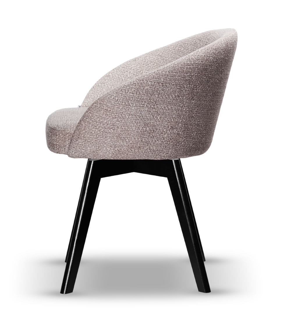 Stelaż wykonany z drewna w kolorze czarnym gwarantuje stabilność i trwałość, a siedzisko z wysokiej jakości pianki HR-35 zapewnia wysoki komfort użytkowania. Krzesło dostępne jest w szerokiej gamie tkanin i kolorów, dzięki czemu z łatwością dopasujesz je do charakteru swojego wnętrza – od skandynawskiego po nowoczesny.