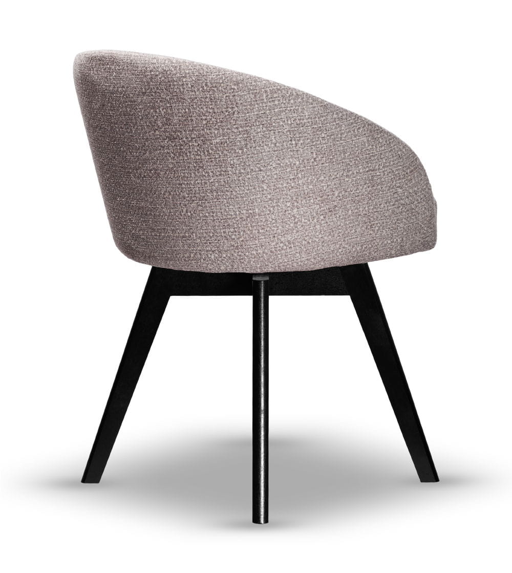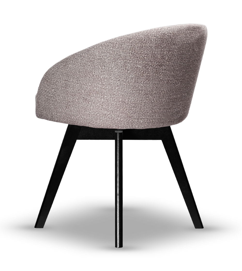 - Pełna nazwa produktu Krzesło obrotowe do jadalni tapicerowane FLOW szare noga drewniana czarna