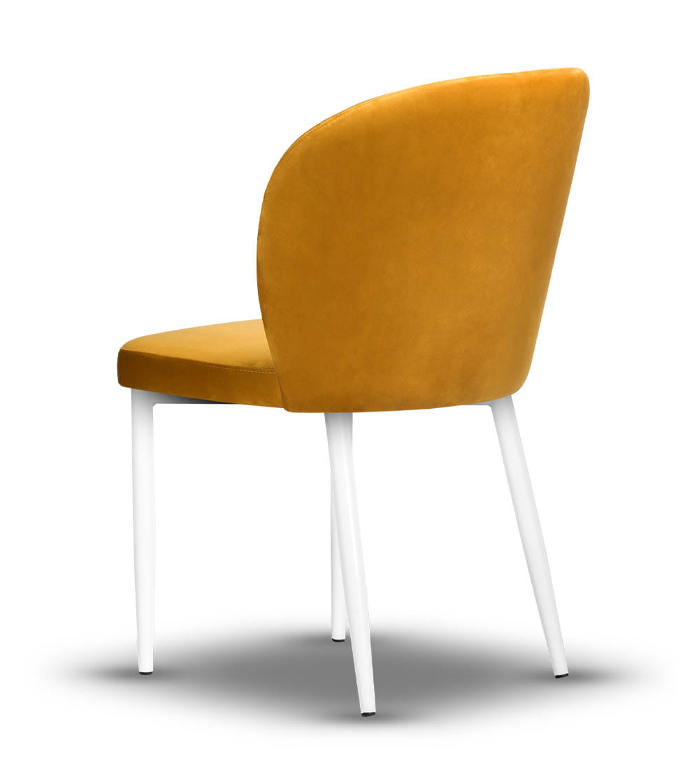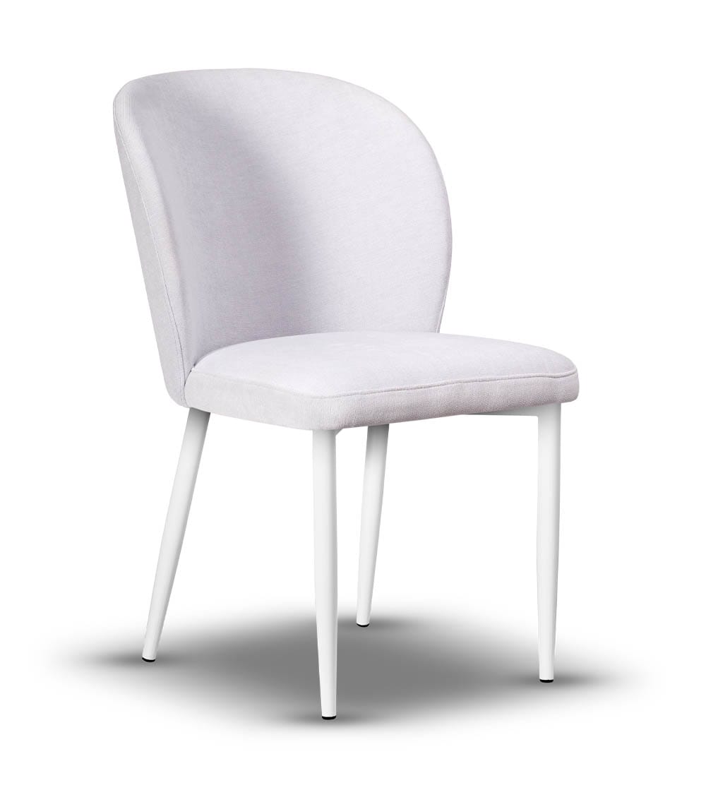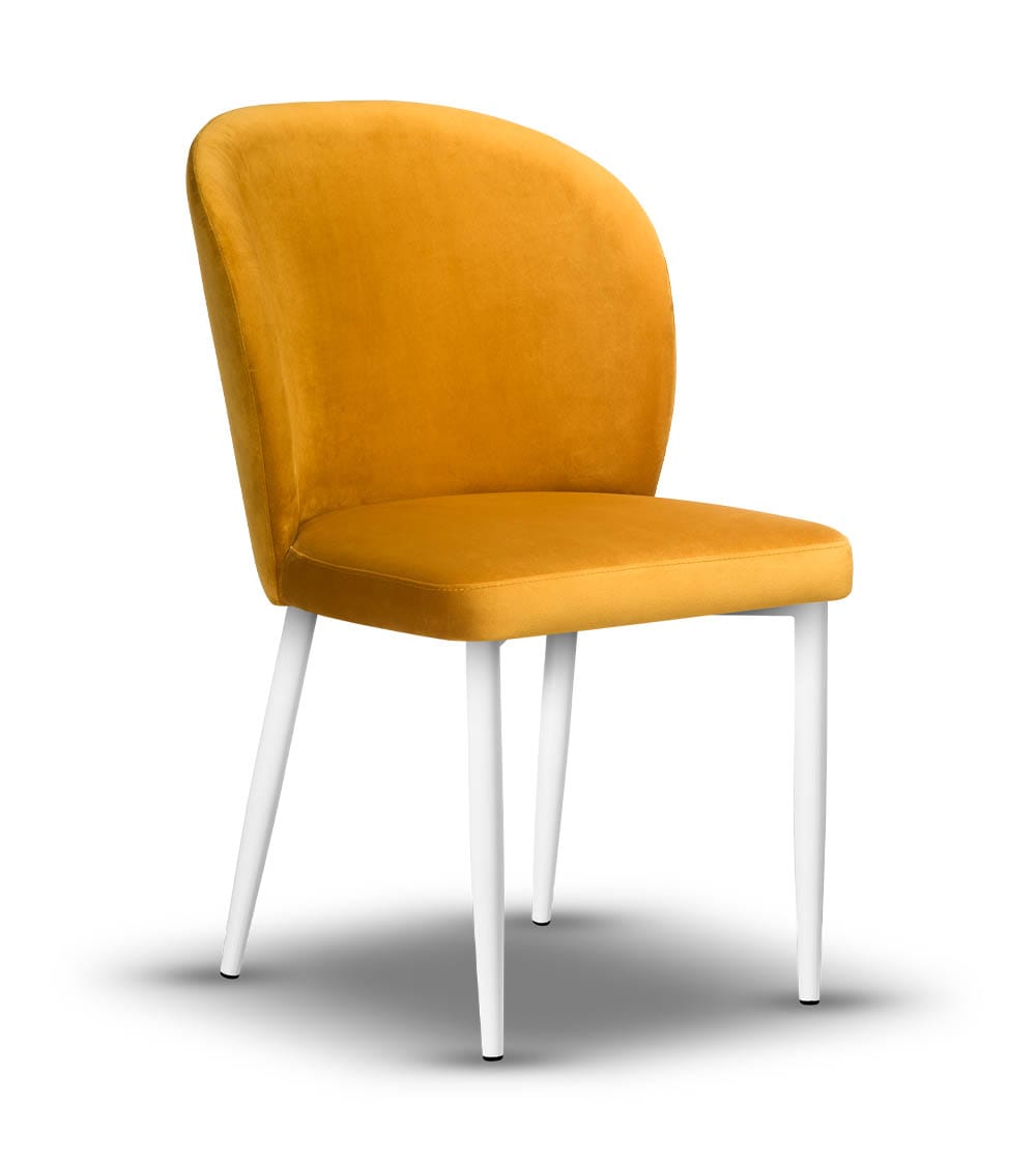 Stelaż wykonany z metalu malowanego proszkowo na kolor biały gwarantuje stabilność i trwałość, a siedzisko z wysokiej jakości pianki T-30 zapewnia wysoki komfort użytkowania. Krzesło dostępne jest w szerokiej gamie tkanin i kolorów, dzięki czemu z łatwością dopasujesz je do charakteru swojego wnętrza – od loft po nowoczesny.
