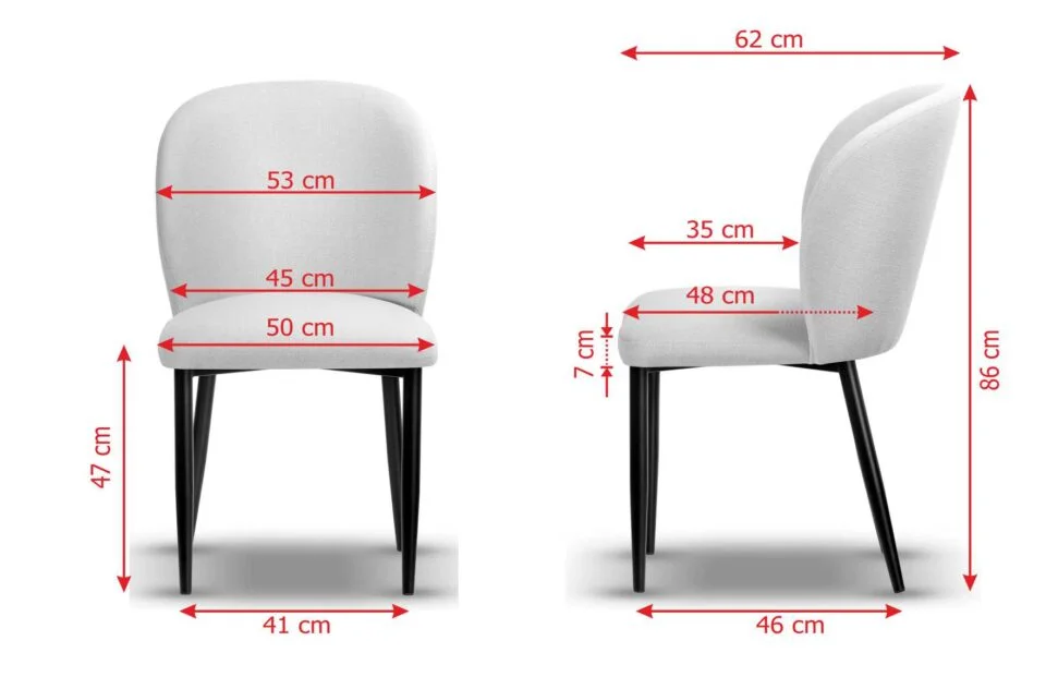 Model Rio łączy prostą, nowoczesną formę z funkcjonalnością. Tapicerowane siedzisko i oparcie wykonane są z wysokiej jakości tkanin, które zachowują estetyczny wygląd nawet przy codziennym użytkowaniu. Smukłe nogi z białego metalu nadają lekkości konstrukcji i podkreślają minimalistyczny charakter mebla. Całość tworzy harmonijne połączenie stylu, wygody i solidności.