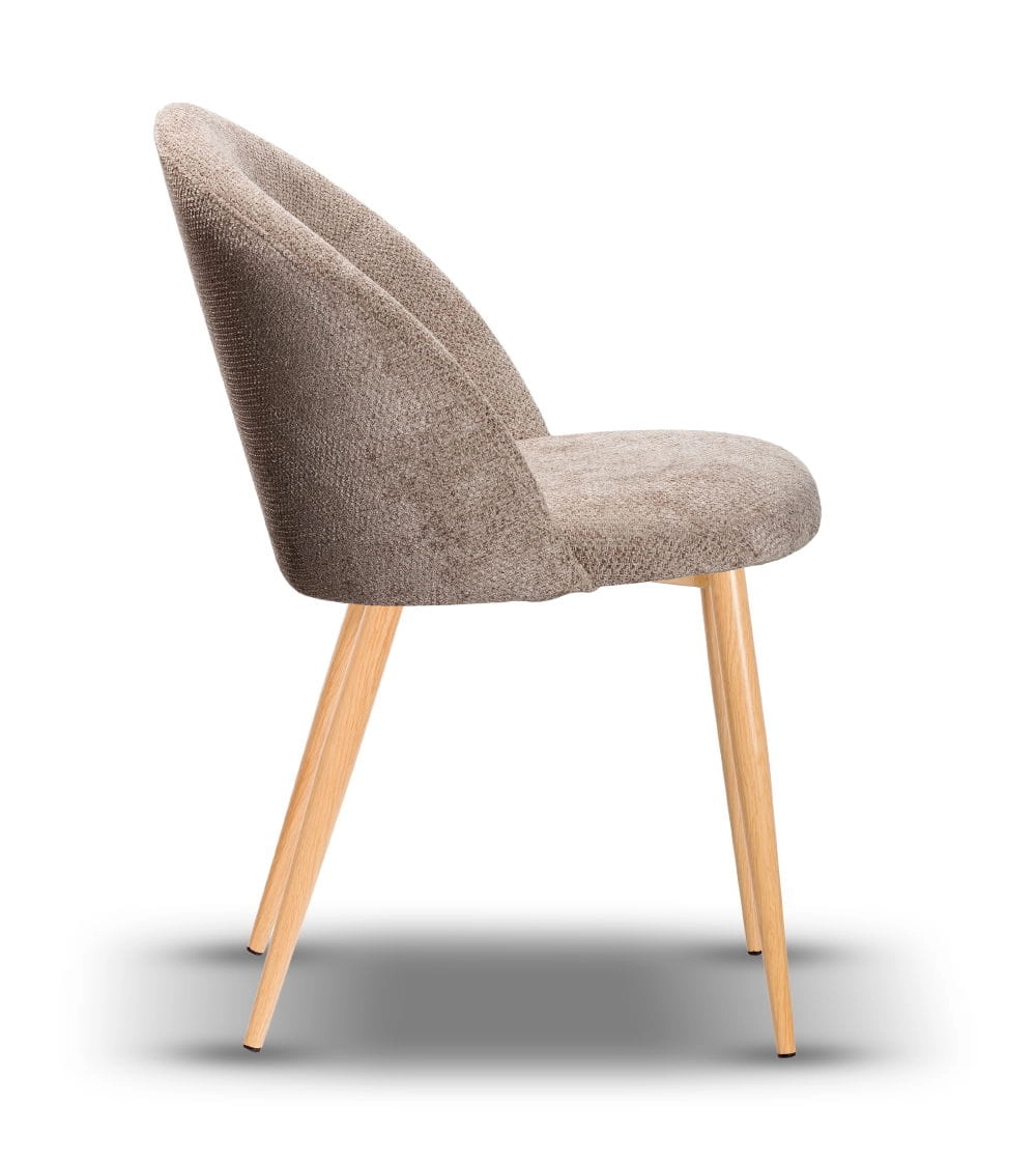 Model Soul łączy prostą, nowoczesną formę z subtelną elegancją. Tapicerowane siedzisko i oparcie wykonane są z wysokiej jakości tkanin, które zachowują estetyczny wygląd nawet przy codziennym użytkowaniu. Smukłe nogi z metalu w kolorze drewna nadają lekkości konstrukcji i podkreślają minimalistyczny charakter mebla. Całość tworzy harmonijne połączenie stylu, wygody i solidności.