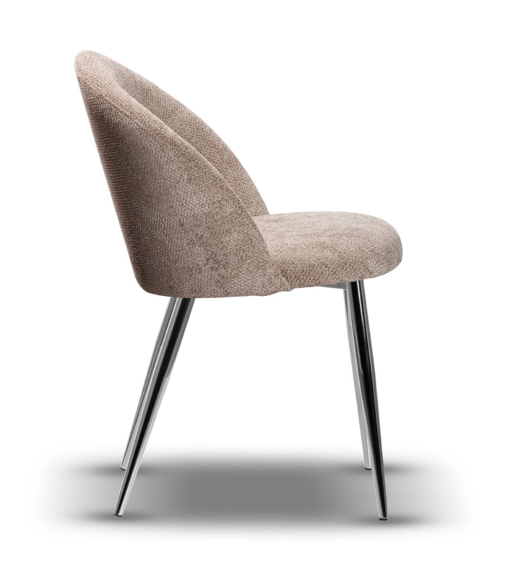 Model Soul łączy prostą, nowoczesną formę z subtelną elegancją. Tapicerowane siedzisko i oparcie wykonane są z wysokiej jakości tkanin, które zachowują estetyczny wygląd nawet przy codziennym użytkowaniu. Smukłe nogi z metalu z lustrzaną powłoką nadają lekkości konstrukcji i podkreślają minimalistyczny charakter mebla. Całość tworzy harmonijne połączenie stylu, wygody i solidności.