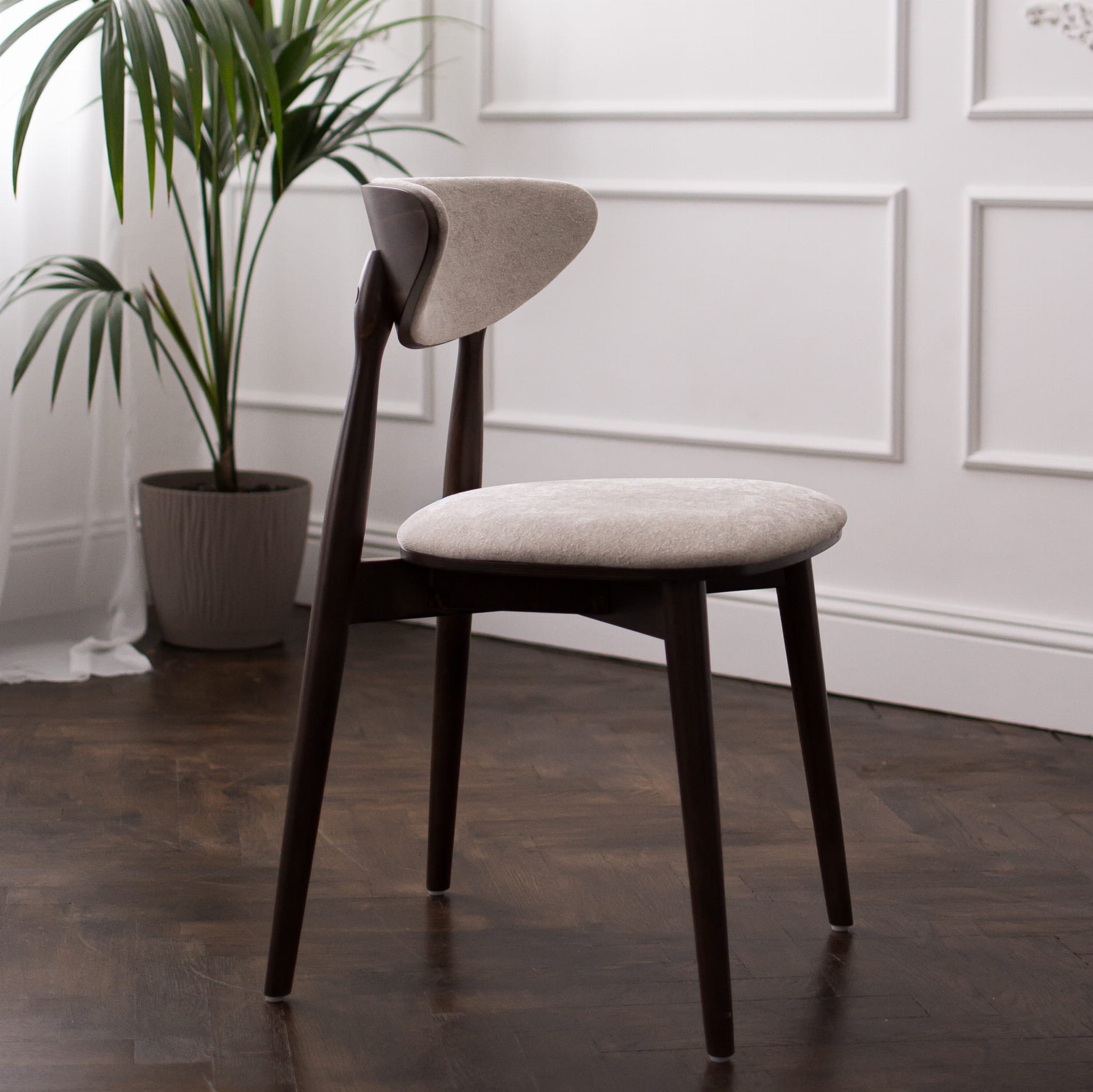 Model Vesta-2 łączy prostą, nowoczesną formę z funkcjonalnością. Tapicerowane siedzisko i oparcie wykonane są z wysokiej jakości tkanin, które zachowują estetyczny wygląd nawet przy codziennym użytkowaniu. Smukłe nogi z drewna bukowego nadają lekkości konstrukcji i podkreślają minimalistyczny charakter mebla. Całość tworzy harmonijne połączenie stylu, wygody i solidności.
