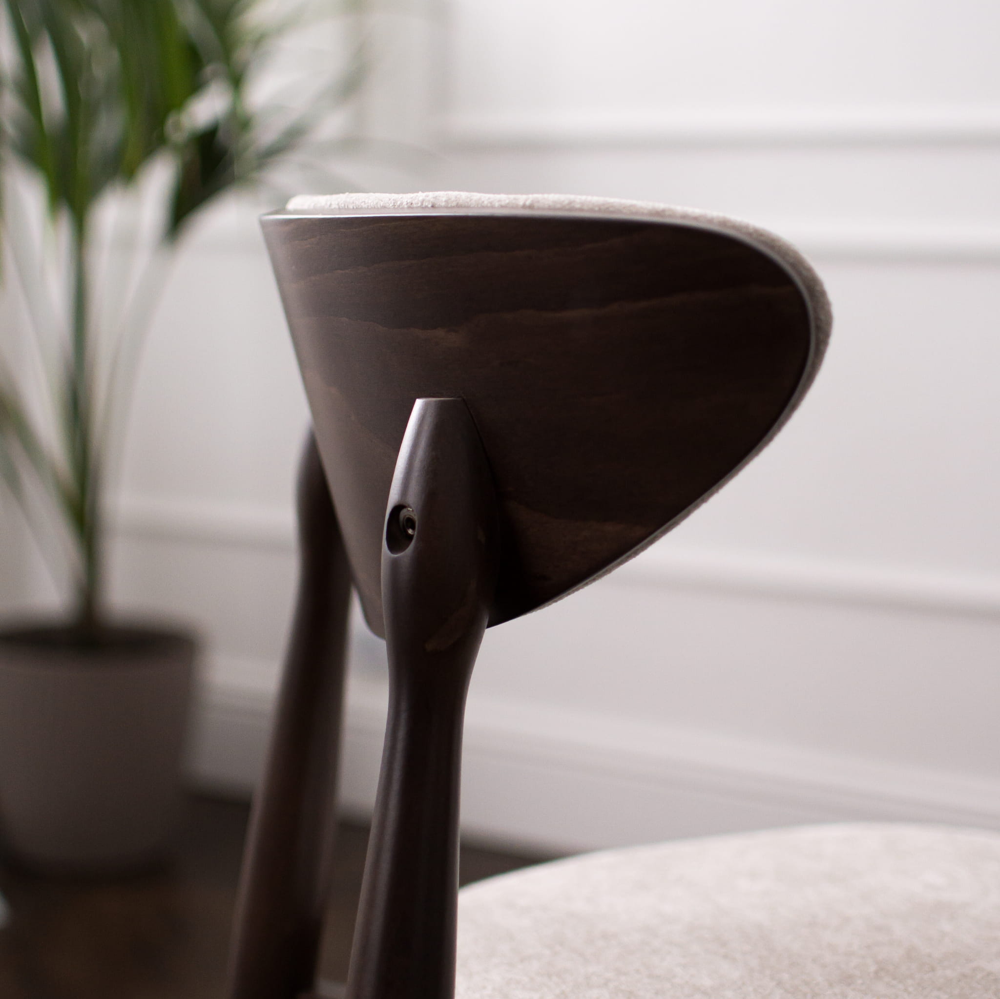 - Stabilny drewniany stelaż – malowany bejcą, wytrzymały i nadający krzesłu niezwykłego charakteru