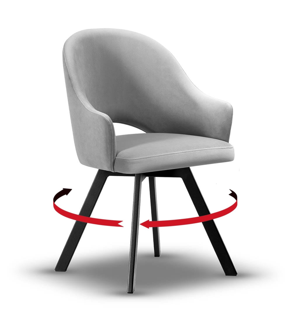 Stelaż wykonany z metalu malowanego proszkowo na kolor czarny gwarantuje stabilność i trwałość, a siedzisko z wysokiej jakości pianki T-30 zapewnia wysoki komfort użytkowania. Mechanizm obrotowy znacząco zwiększa funkcjonalność mebla. Krzesło dostępne jest w szerokiej gamie tkanin i kolorów, dzięki czemu z łatwością dopasujesz je do charakteru swojego wnętrza – od loftowego po prowansalski.