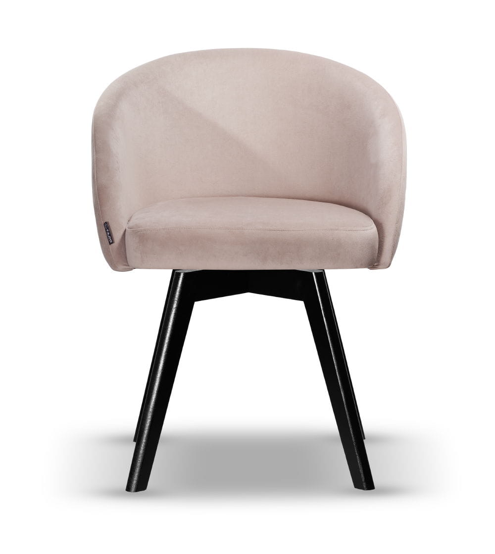 - Pełna nazwa produktu Krzesło obrotowe do jadalni welurowe FLOW beżowe noga drewniana czarna