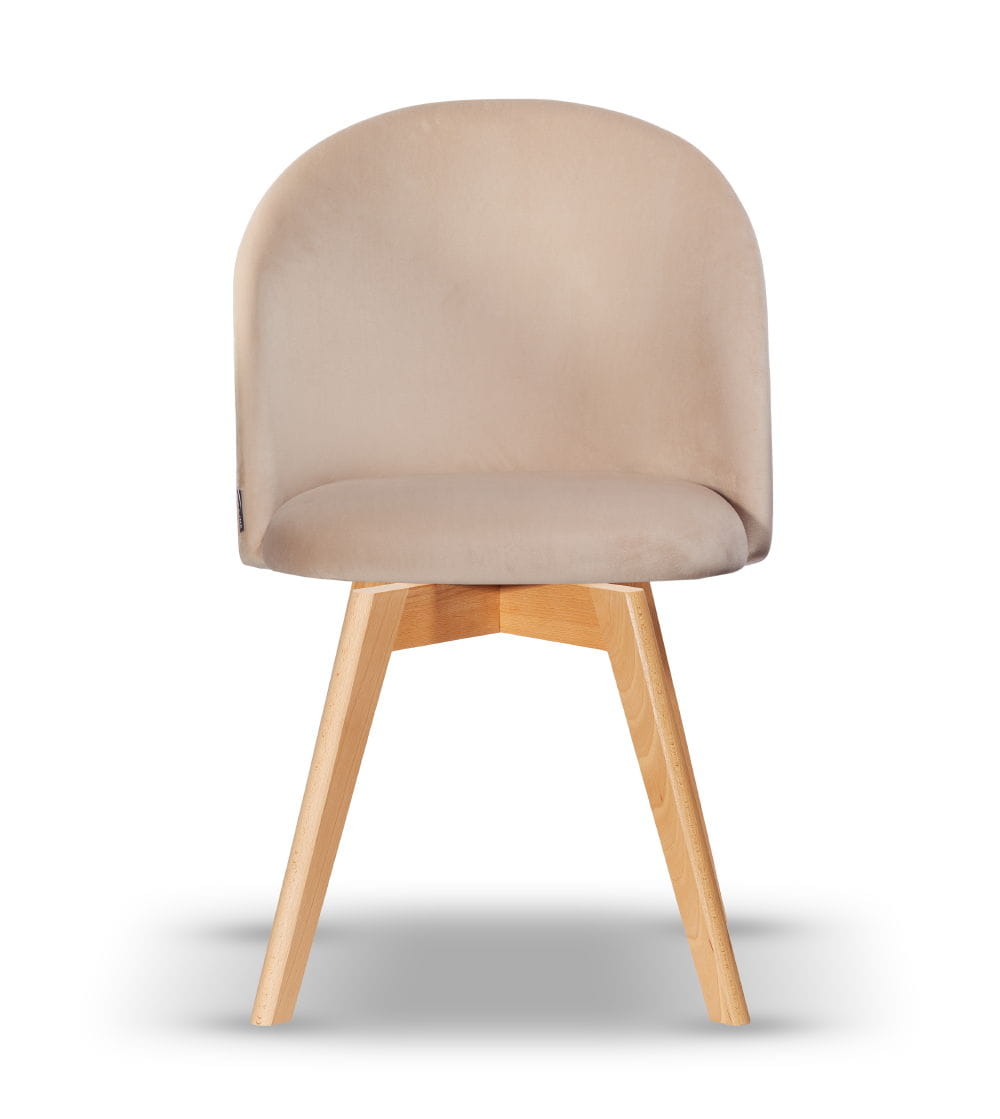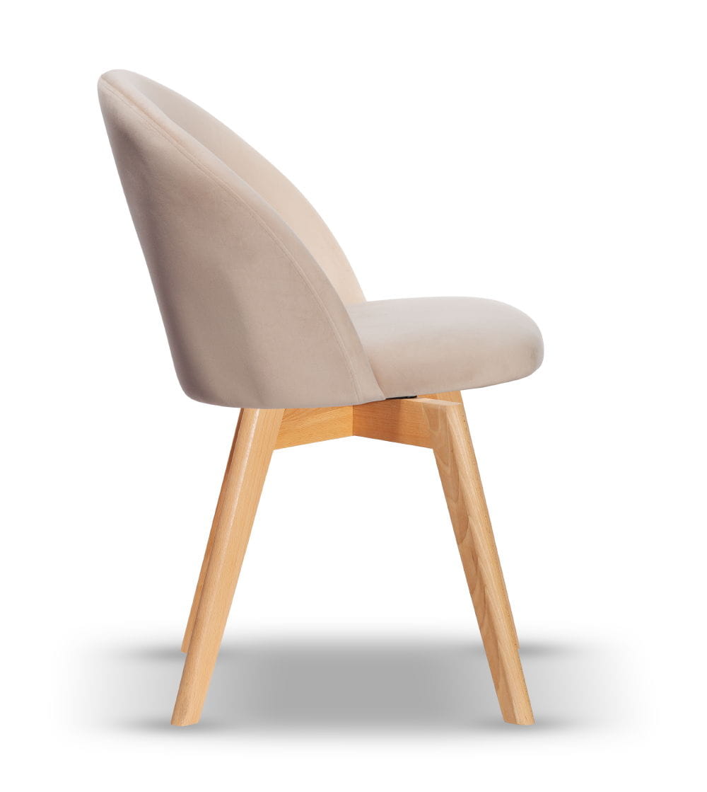 Krzesło Welurowe Obrotowe SOUL jasny beż noga drewniana kolor dąb