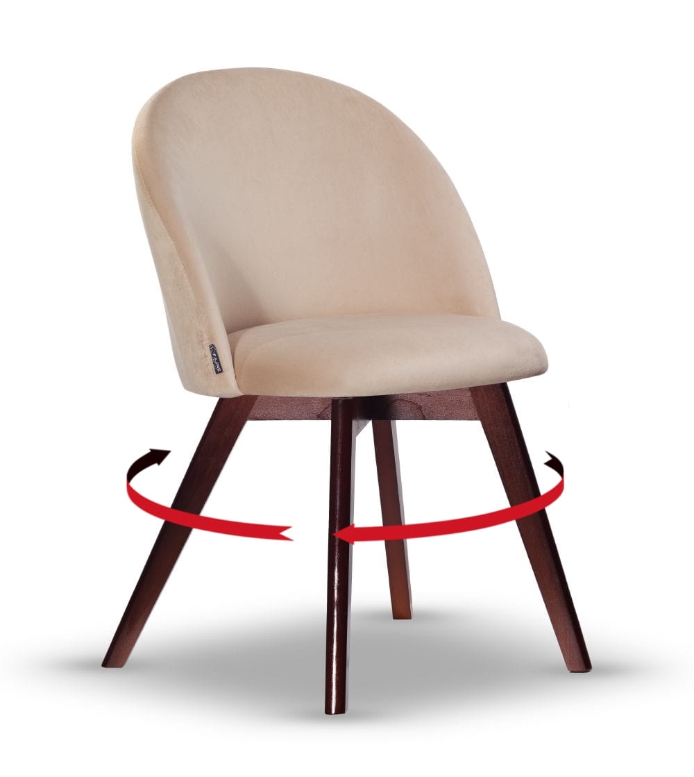 Krzesło Welurowe Obrotowe SOUL jasny beż noga drewniana kolor orzech