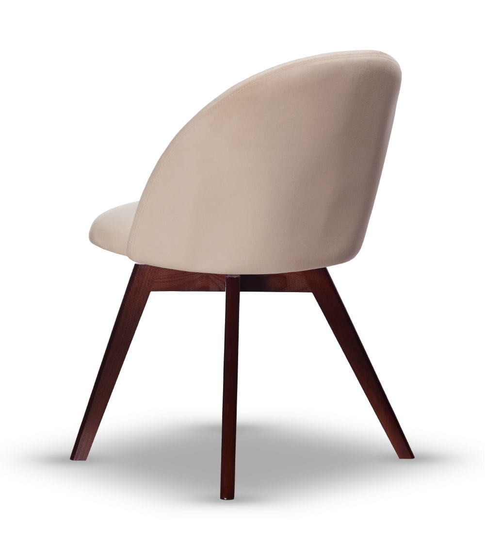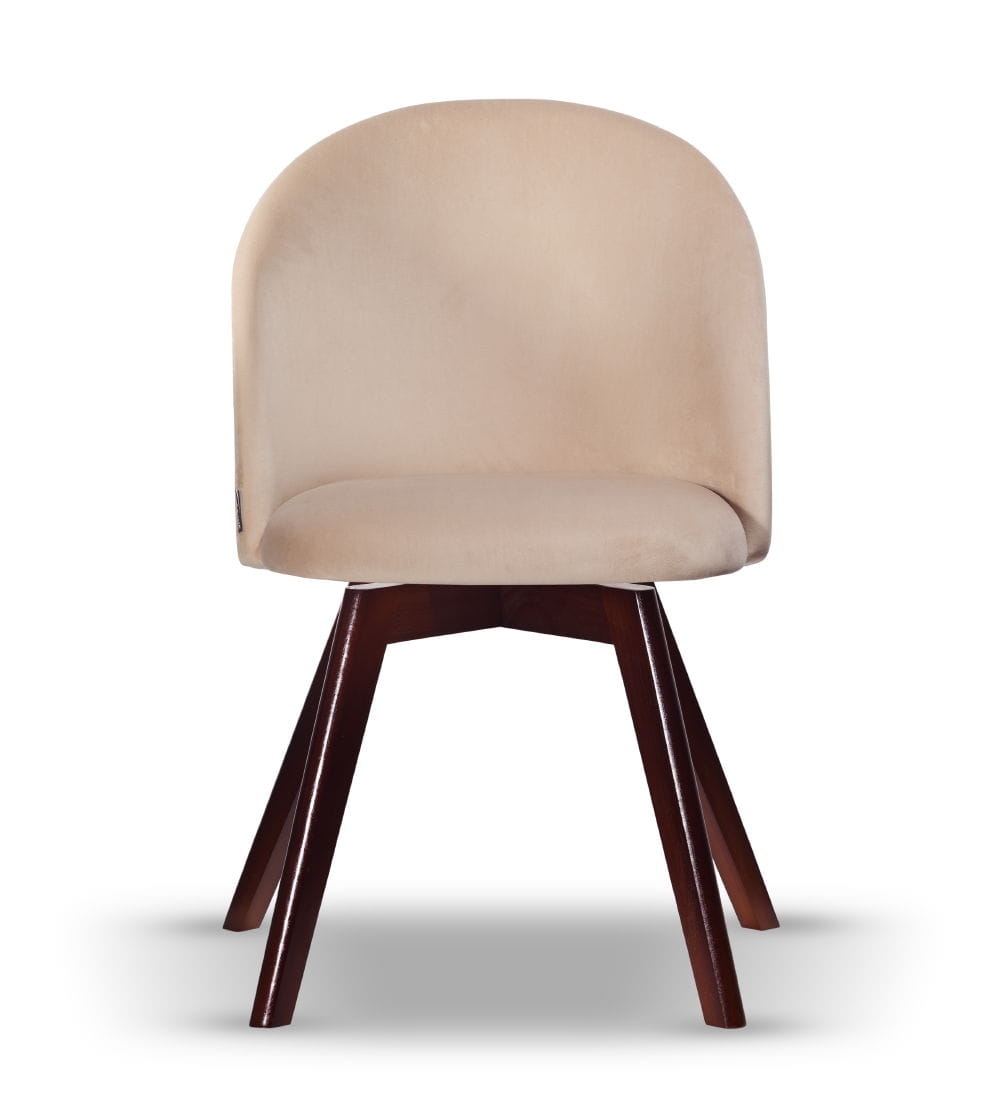 Krzesło Welurowe SOUL noga obrotowa drewniana w kolorze orzechowym, tkanina w kolorze jasno beżowym