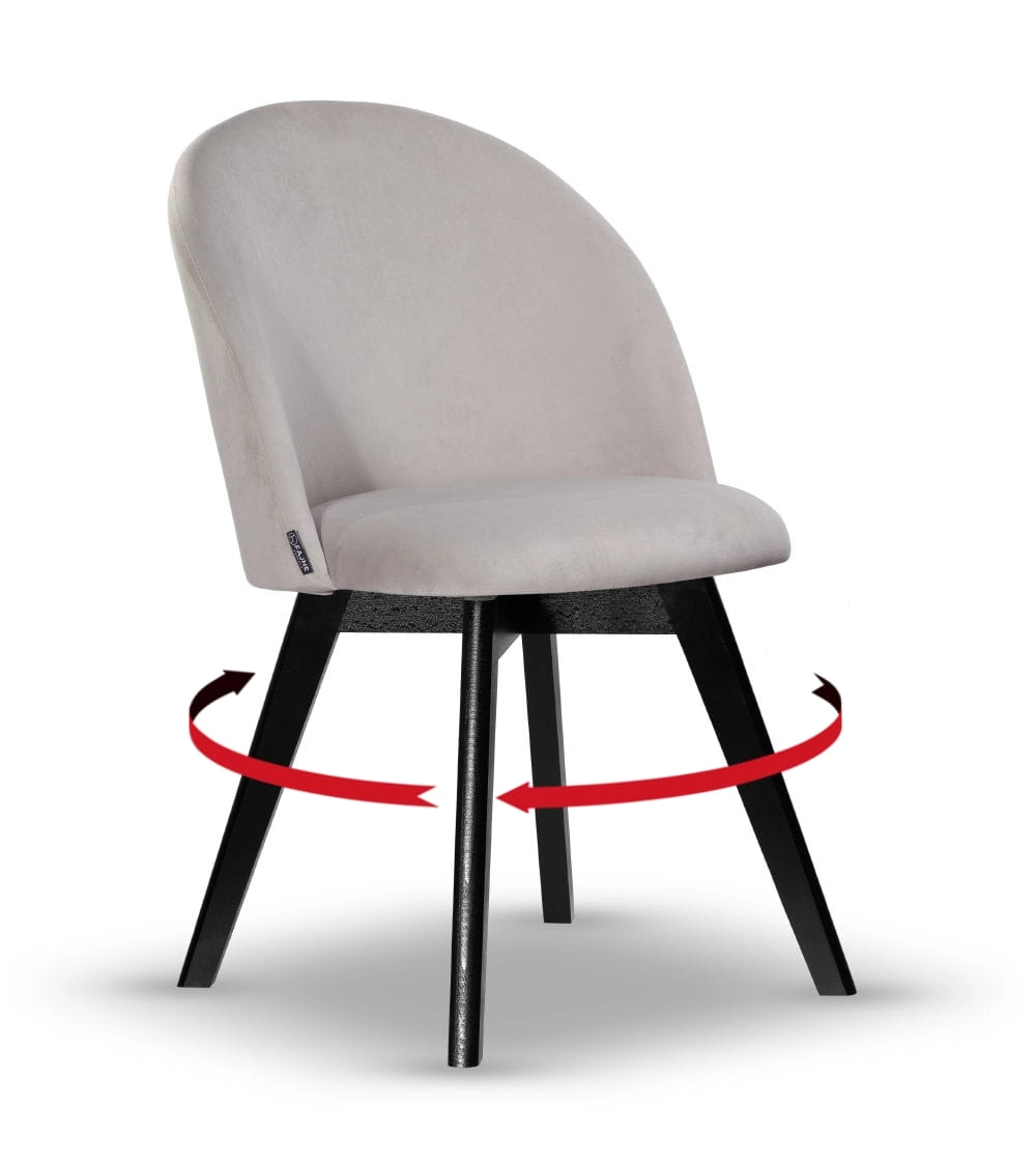 Krzesło Welurowe Obrotowe SOUL jasny szary noga drewniana kolor czarny