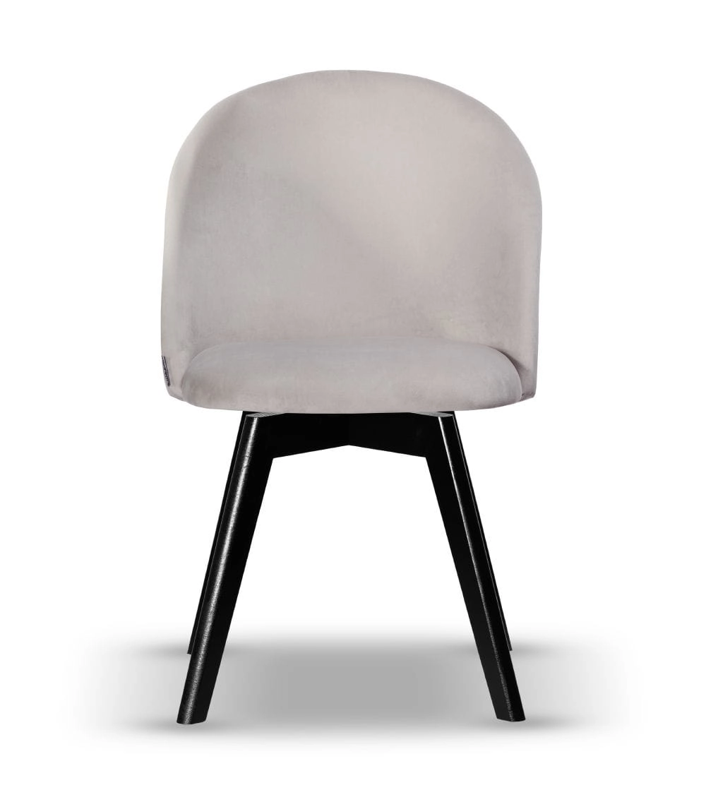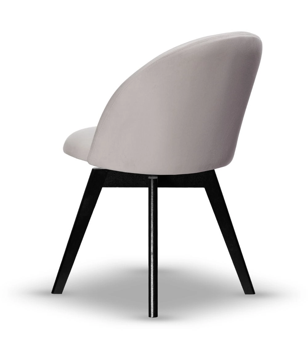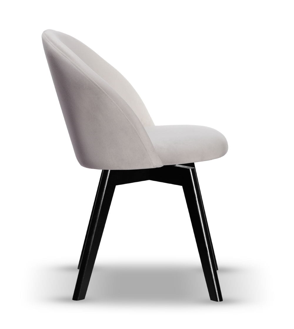Krzesło Welurowe SOUL noga obrotowa drewniana czarna, tkanina w kolorze jasno szarym