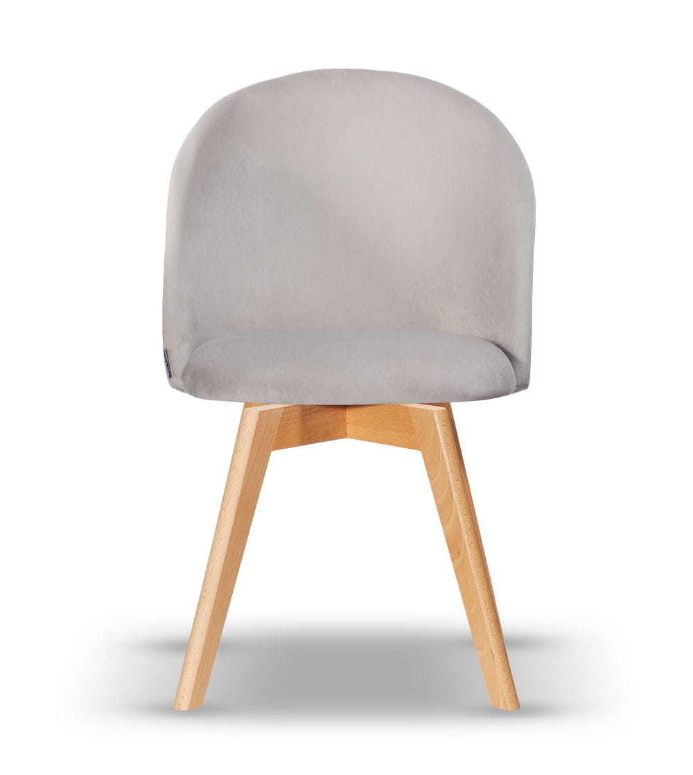 Krzesło Welurowe SOUL noga obrotowa drewniana w kolorze dębowym, tkanina w kolorze jasno szarym