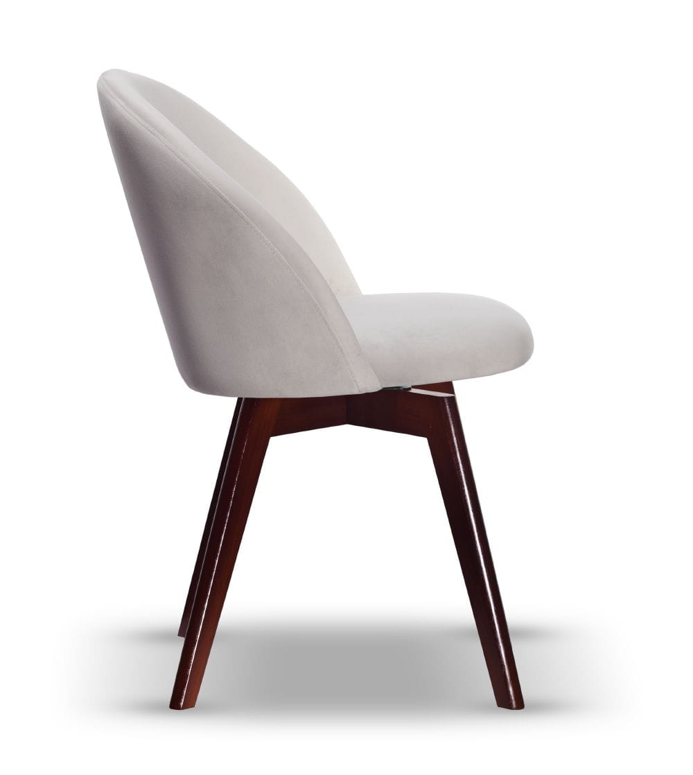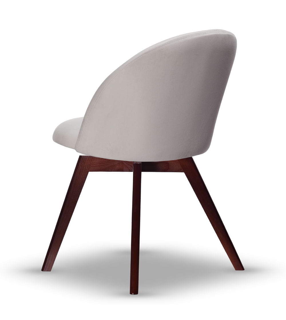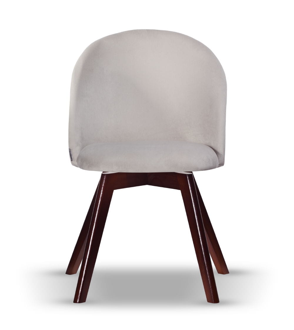 Krzesło Welurowe SOUL noga obrotowa drewniana w kolorze orzechowym, tkanina w kolorze jasno szarym