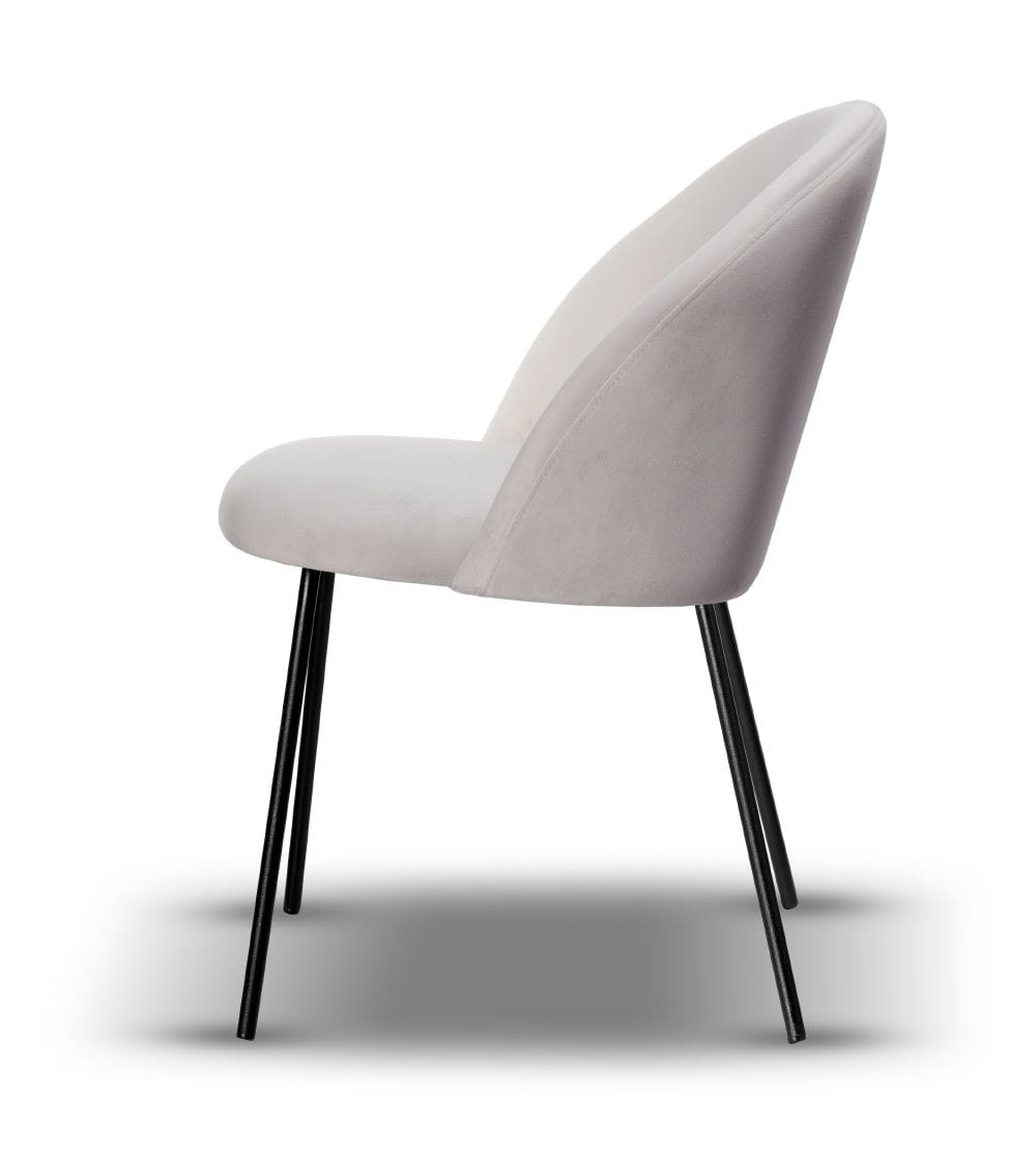 Krzesło Soul to doskonały wybór do nowoczesnych kuchni i jadalni, a także do wnętrz komercyjnych, takich jak restauracje, hotele czy biura. Welurowa tkanina w kolorze jasno szarym, którą tapicerowane jest krzesło, nada klasy twoim aranżacjom.