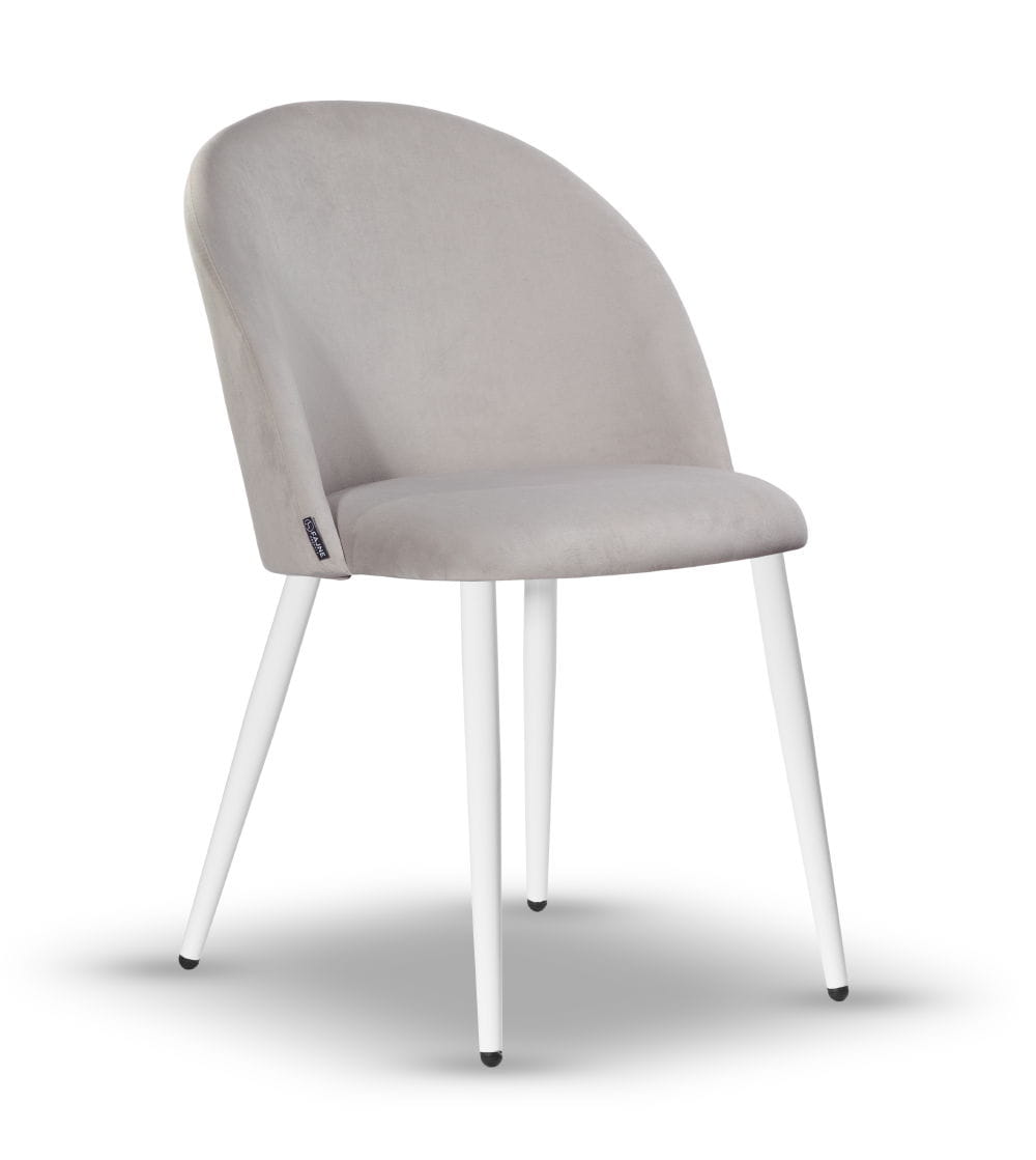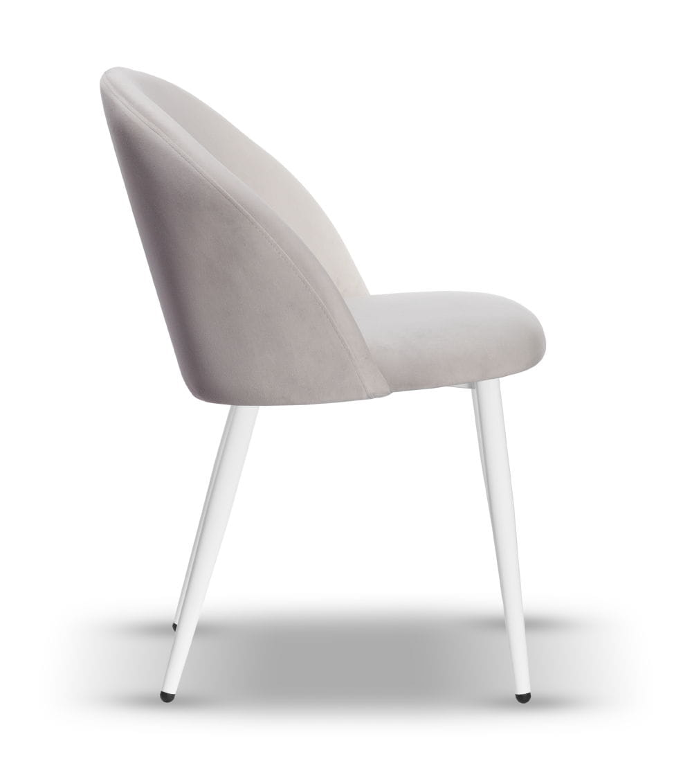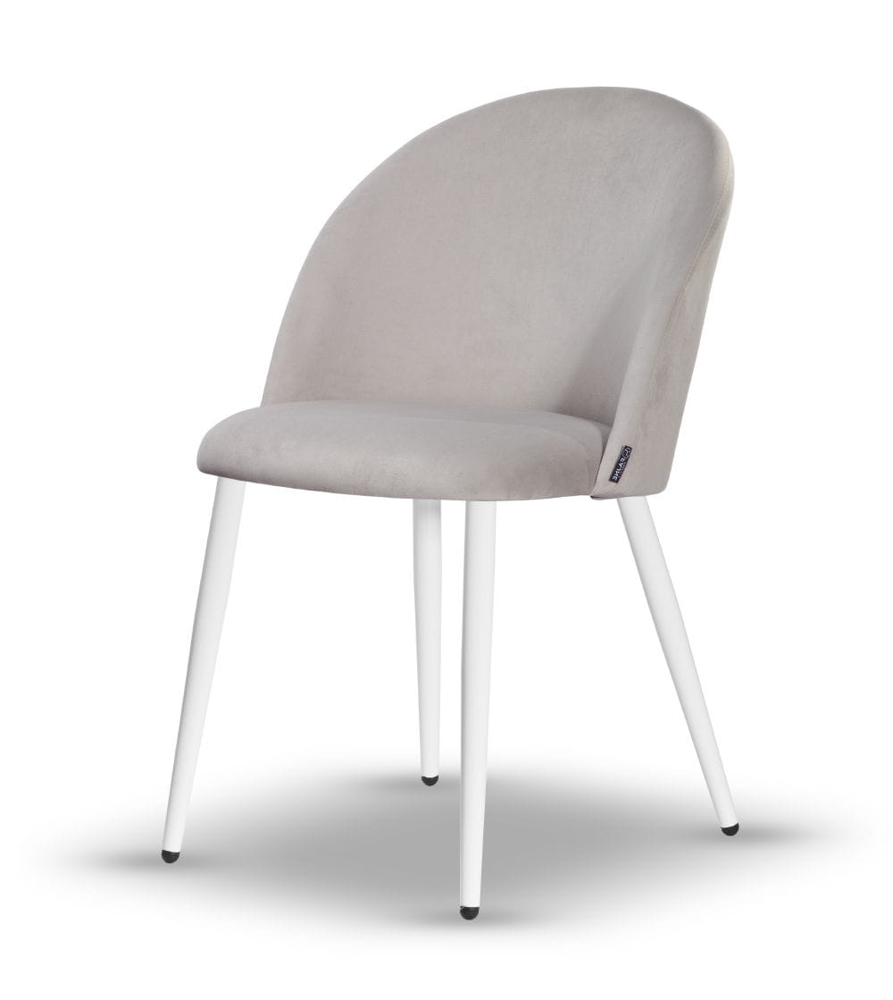 Krzesło Tapicerowane SOUL noga biała z tkaniną welurową w kolorze jasnej szarości