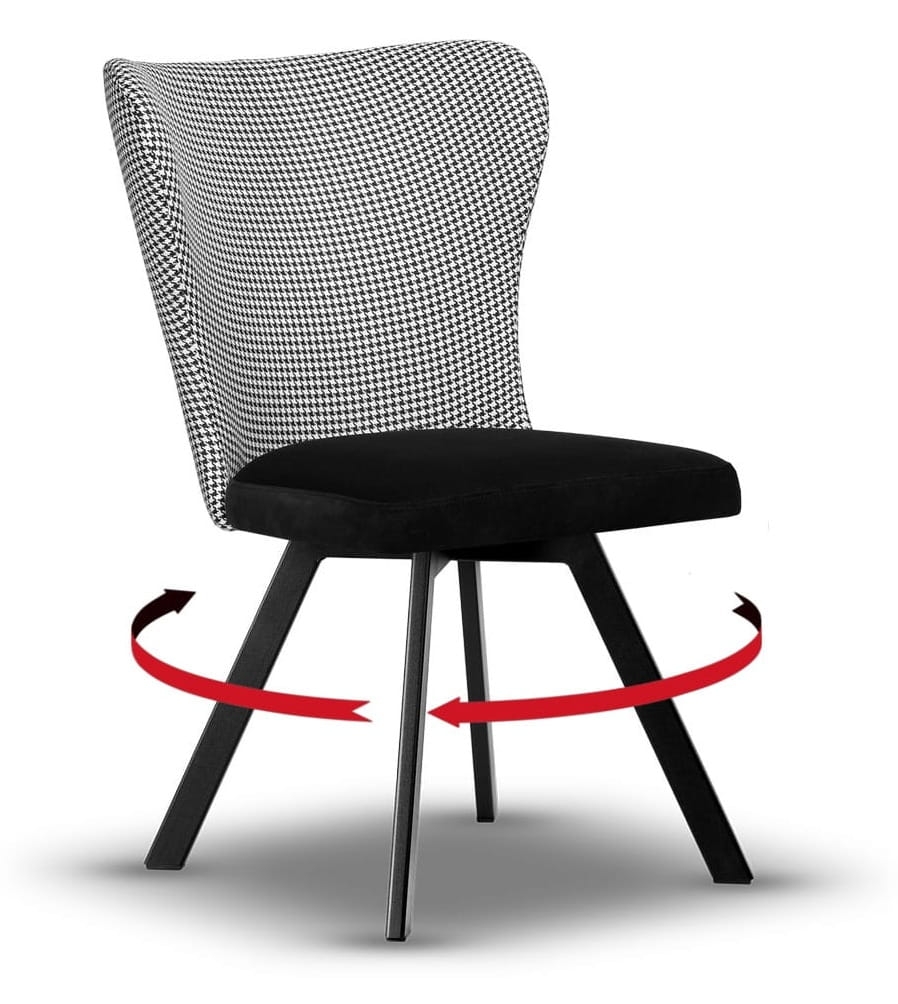Stelaż wykonany z metalu pomalowanego proszkowo na kolor czarny gwarantuje stabilność i trwałość, a siedzisko z wysokiej jakości pianki T-30 zapewnia wysoki komfort użytkowania. Mechanizm obrotowy znacząco zwiększa funkcjonalność krzesła. Krzesło dostępne jest w szerokiej gamie tkanin i kolorów, dzięki czemu z łatwością dopasujesz je do charakteru swojego wnętrza – od loft po nowoczesny.