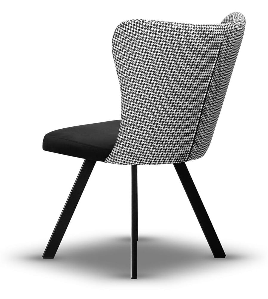 Model Cleo łączy zaskakującą, nowoczesną formę z funkcjonalnością. Tapicerowane siedzisko i oparcie wykonane są z wysokiej jakości tkanin, które zachowują estetyczny wygląd nawet przy codziennym użytkowaniu. Smukłe nogi z czarnego metalu nadają lekkości konstrukcji i podkreślają niezwykły charakter mebla. Całość tworzy harmonijne połączenie stylu, wygody i solidności.