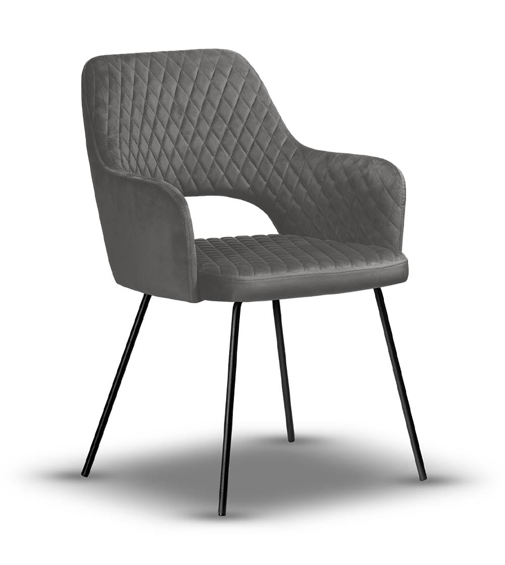 Wygodne siedzisko pokryte wysokogatunkowym welurem zapewnia maksymalny komfort użytkowania, a podłokietniki oraz kubełkowe oparcie dodatkowo podkreślają wyjątkowość tego krzesła.