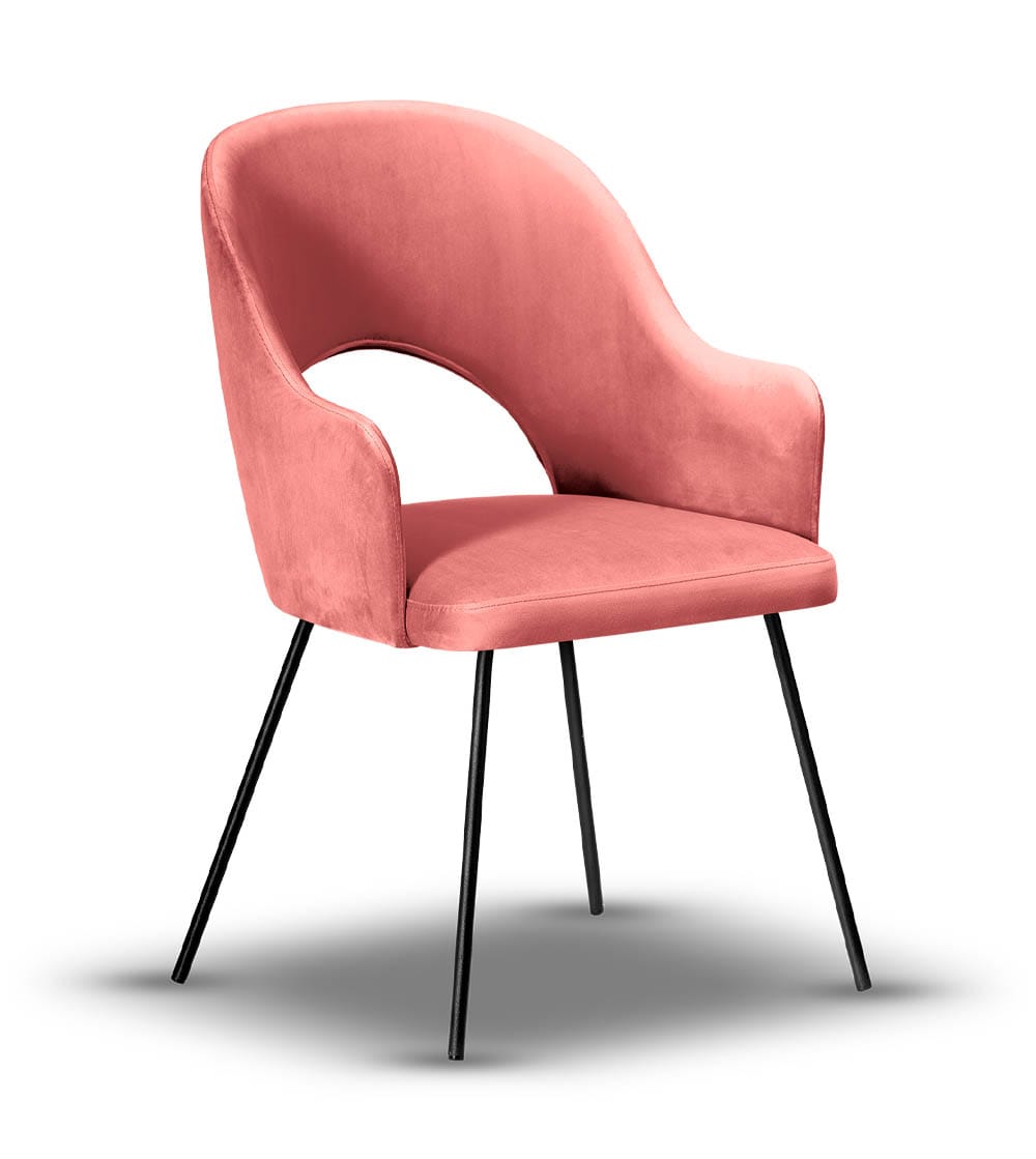 Stelaż wykonany z metalu malowanego proszkowo na kolor czarny gwarantuje stabilność i trwałość, a siedzisko z wysokiej jakości pianki T-30 zapewnia wysoki komfort użytkowania. Krzesło dostępne jest w szerokiej gamie tkanin i kolorów, dzięki czemu z łatwością dopasujesz je do charakteru swojego wnętrza – od angielskiego po nowoczesny.