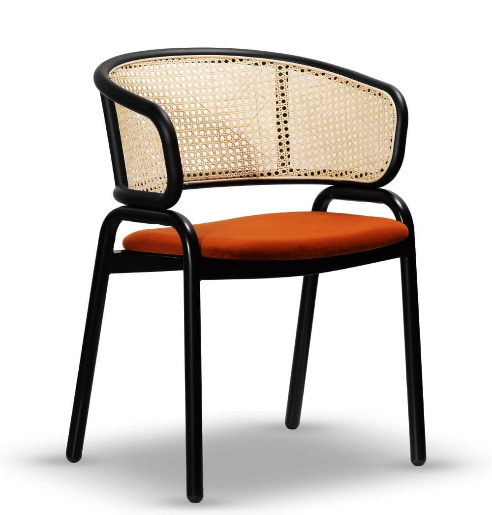 Model Alto łączy prostą, nowoczesną formę z subtelną elegancją. Tapicerowane siedzisko z wysokiej jakości materiałów, oparcie zostało wykonane z naturalnego rattanu, który zachowują estetyczny wygląd nawet przy codziennym użytkowaniu. Smukłe nogi z czarnego metalu nadają lekkości konstrukcji i podkreślają minimalistyczny charakter mebla. Całość tworzy harmonijne połączenie stylu, wygody i solidności.