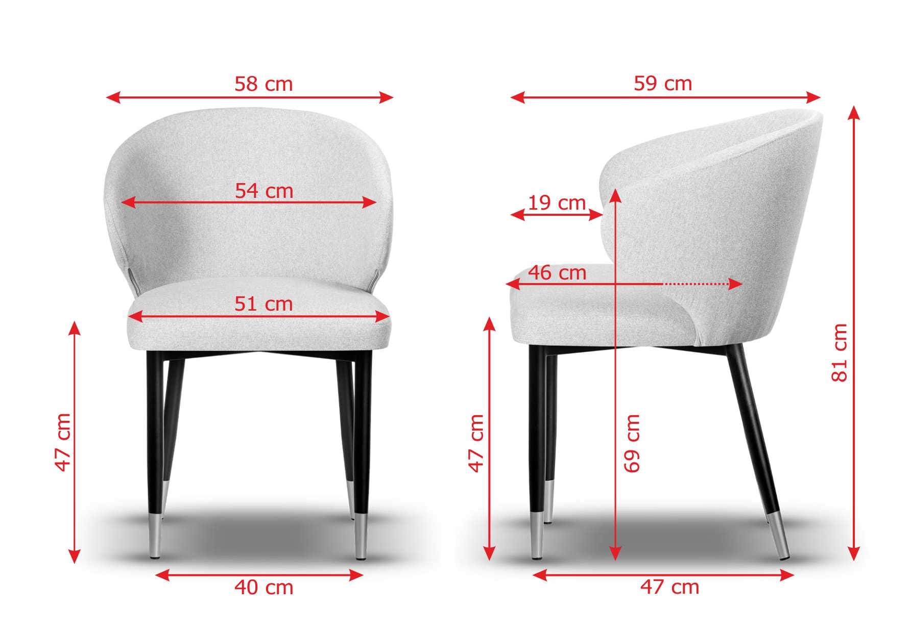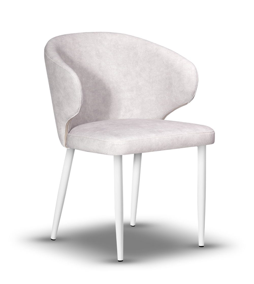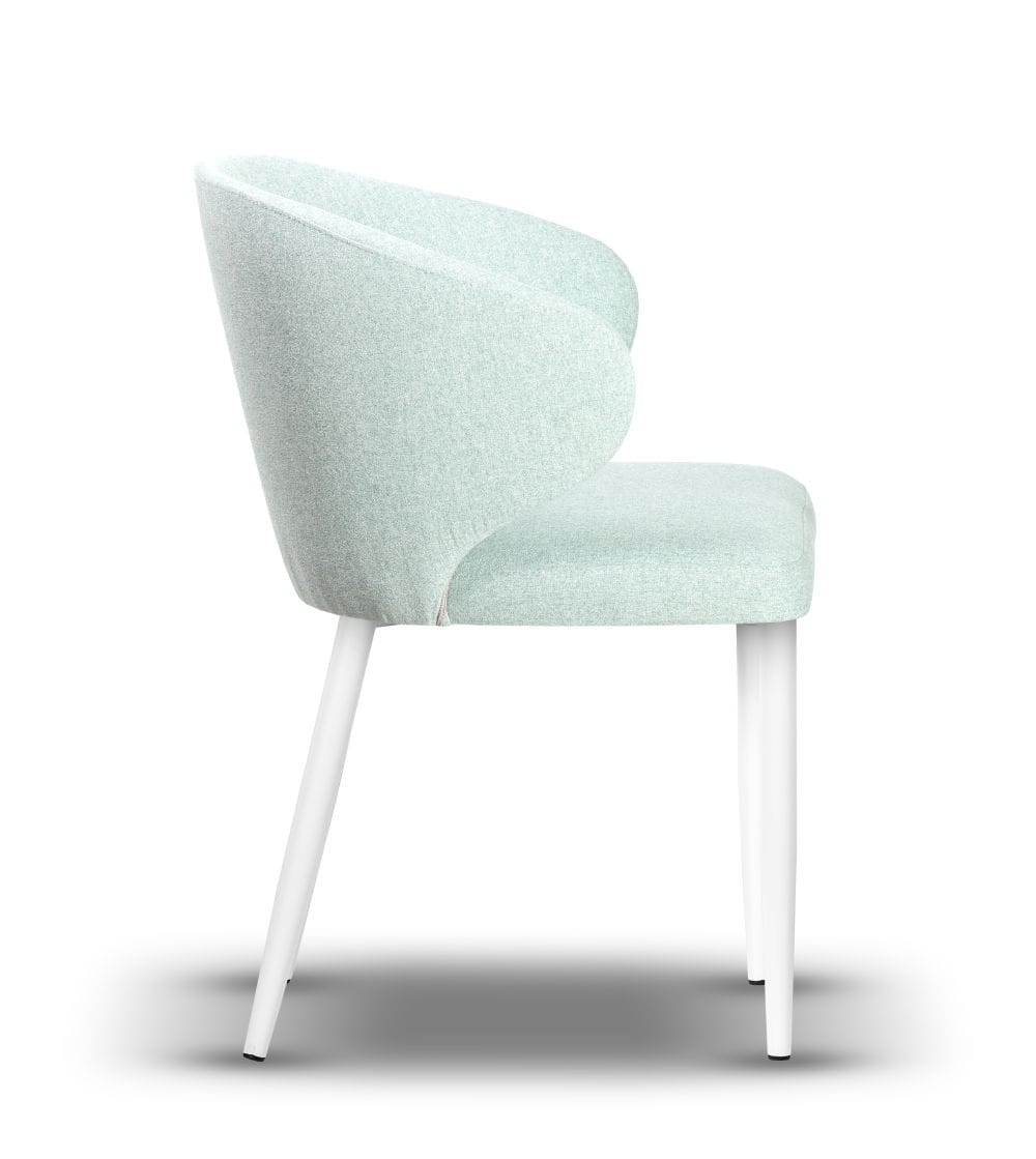 Model Molly łączy prostą, nowoczesną formę z funkcjonalnością. Tapicerowane siedzisko i oparcie wykonane są z wysokiej jakości tkanin, które zachowują estetyczny wygląd nawet przy codziennym użytkowaniu. Smukłe nogi z białego metalu nadają lekkości konstrukcji i podkreślają minimalistyczny charakter mebla. Całość tworzy harmonijne połączenie stylu, wygody i solidności.