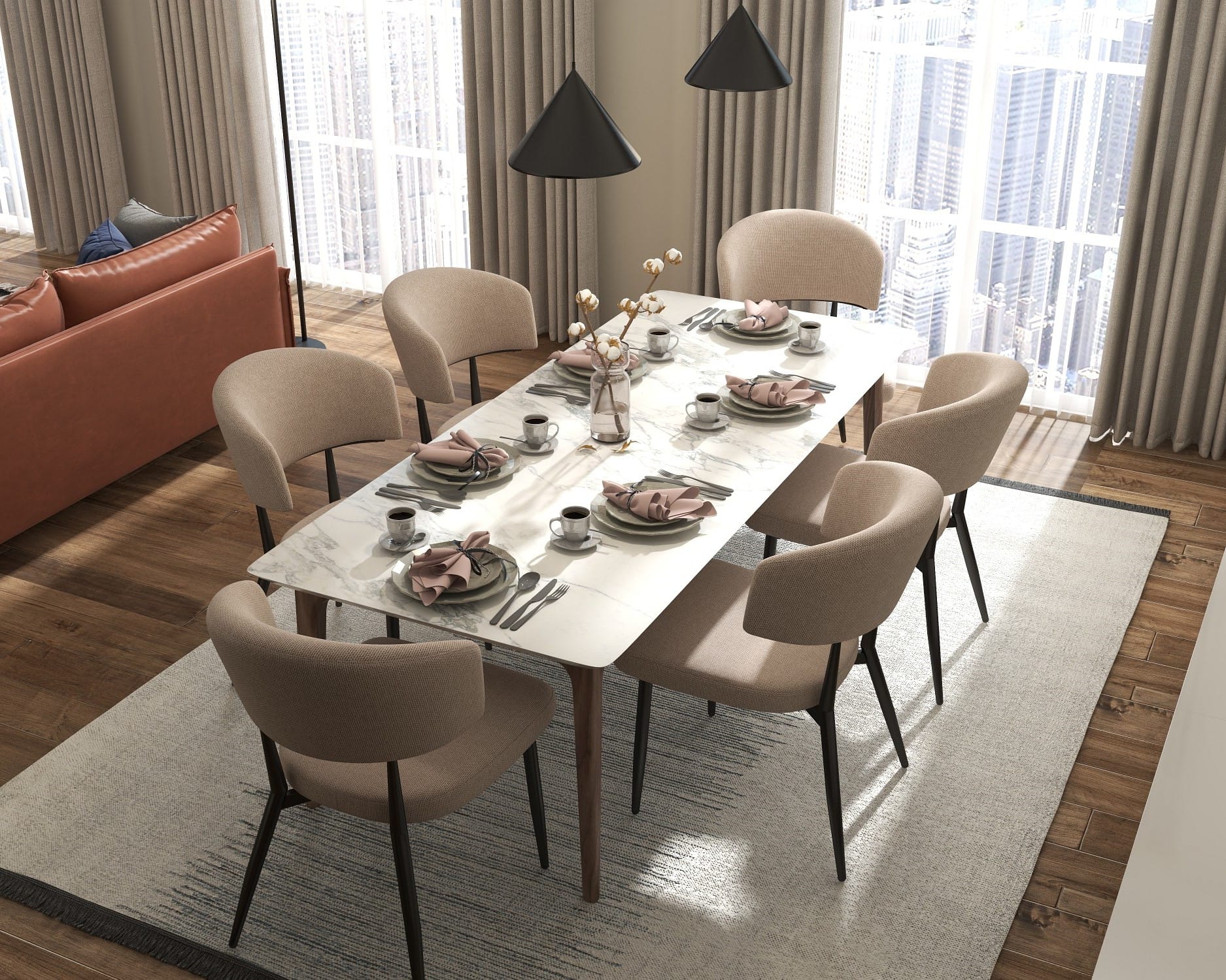 Krzesło Marco z lamówką doskonale sprawdzi się w nowoczesnych jadalniach, salonach, restauracjach i biurach. Dzięki szerokiej gamie tkanin i kolorów lamówki z łatwością dopasujesz je do stylu wnętrza – od skandynawskiego po glamour.