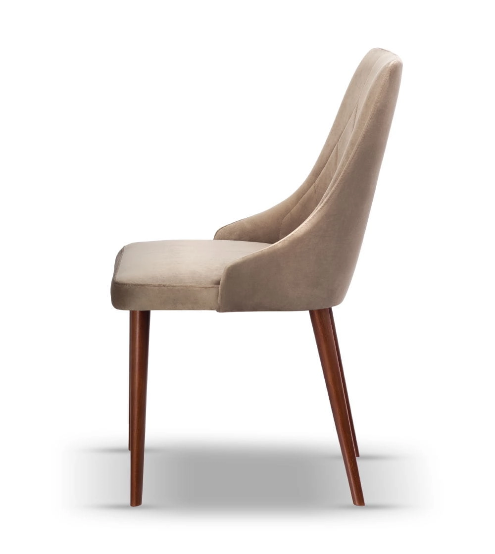 Model Caren łączy prostą, nowoczesną formę z subtelną elegancją. Tapicerowane siedzisko i oparcie wykonane są z wysokiej jakości tkanin, które zachowują estetyczny wygląd nawet przy codziennym użytkowaniu. Smukłe nogi z drewna bukowego nadają lekkości konstrukcji i podkreślają minimalistyczny charakter mebla. Całość tworzy harmonijne połączenie stylu, wygody i solidności.